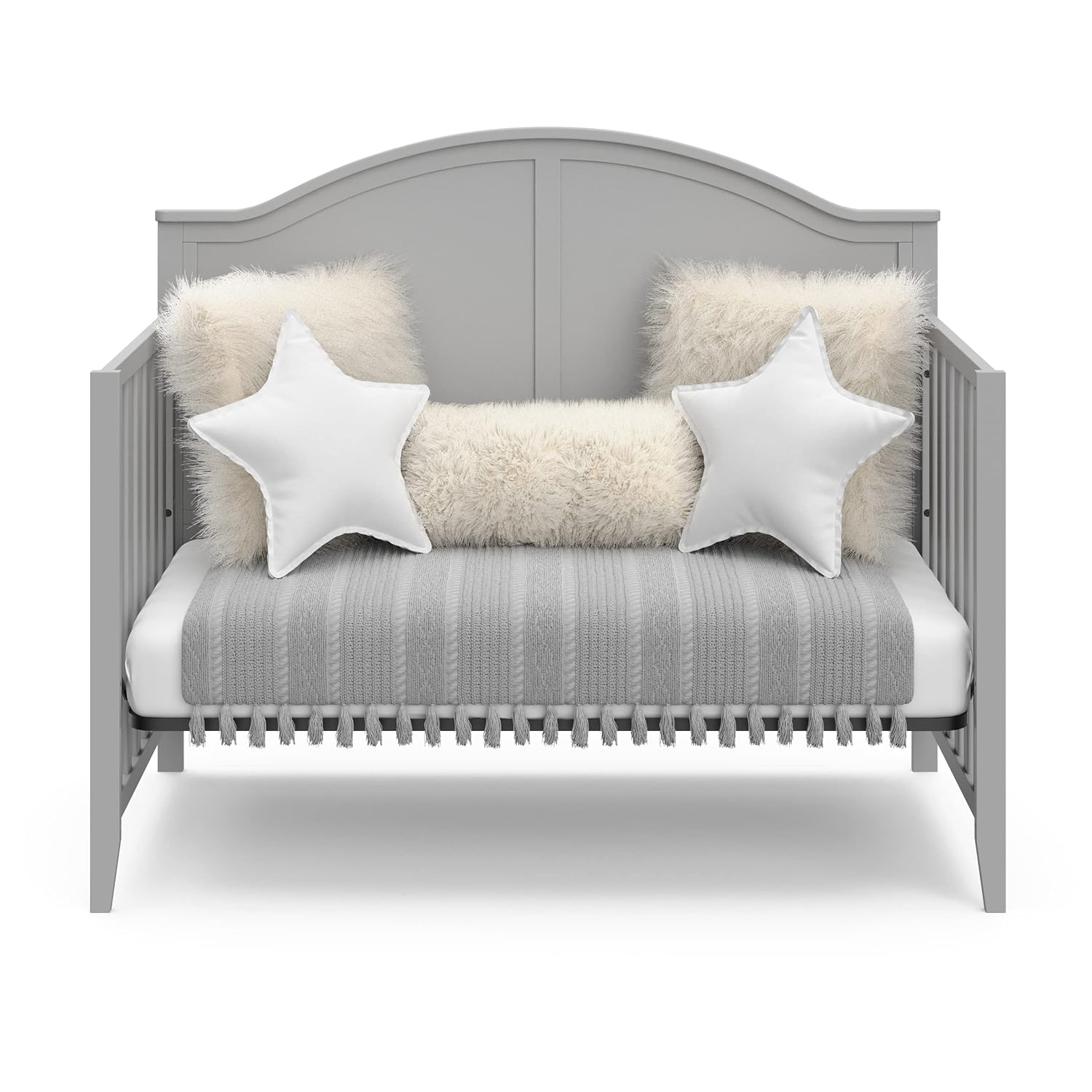 - 5-IN-1 CONVERTIBLE CRIB: Converts from baby crib (mattress included) to toddler bed (compatible toddler guardrails sold separately), daybed, and full-size bed with headboard & optional footboard (conversion kit sold separately); Assembly required