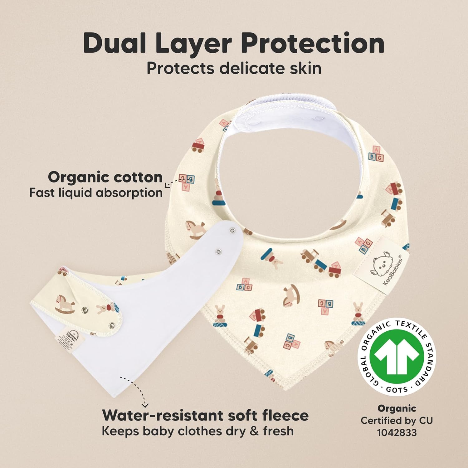 - Highly Absorbent - Our bandana bibs for baby boy feature a dual-layer of GOTS Organic Cotton for optimal absorption and backed with soft polyester fleece for extra protection. Easy to clean, ideal for daily use. Machine wash and tumble dry low.