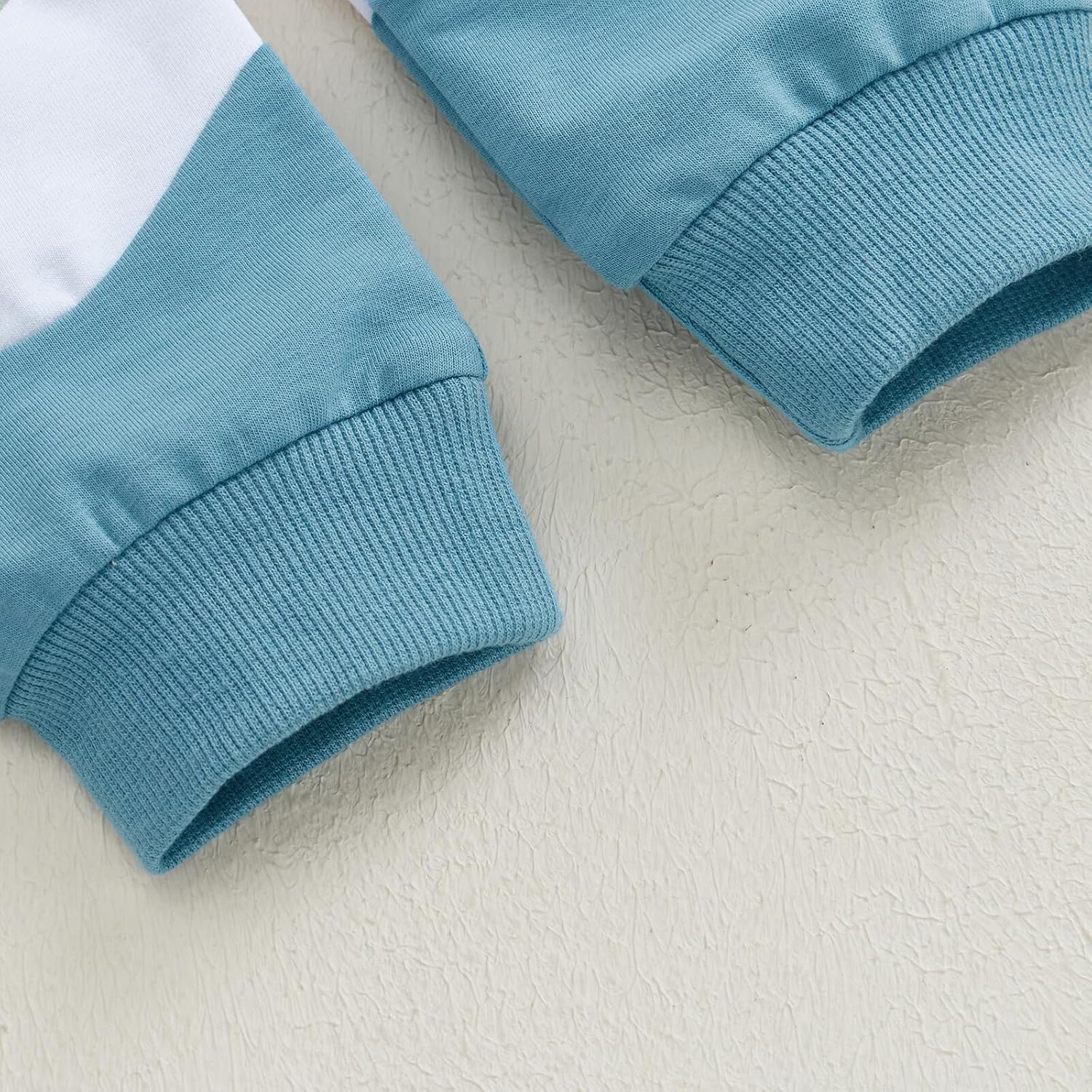 Kupretty Toddler Baby Boy Fall Winter Clothes Color Block Long Sleeve Sweatshirt Pullover Tops + Joggers Pants Outfit Set