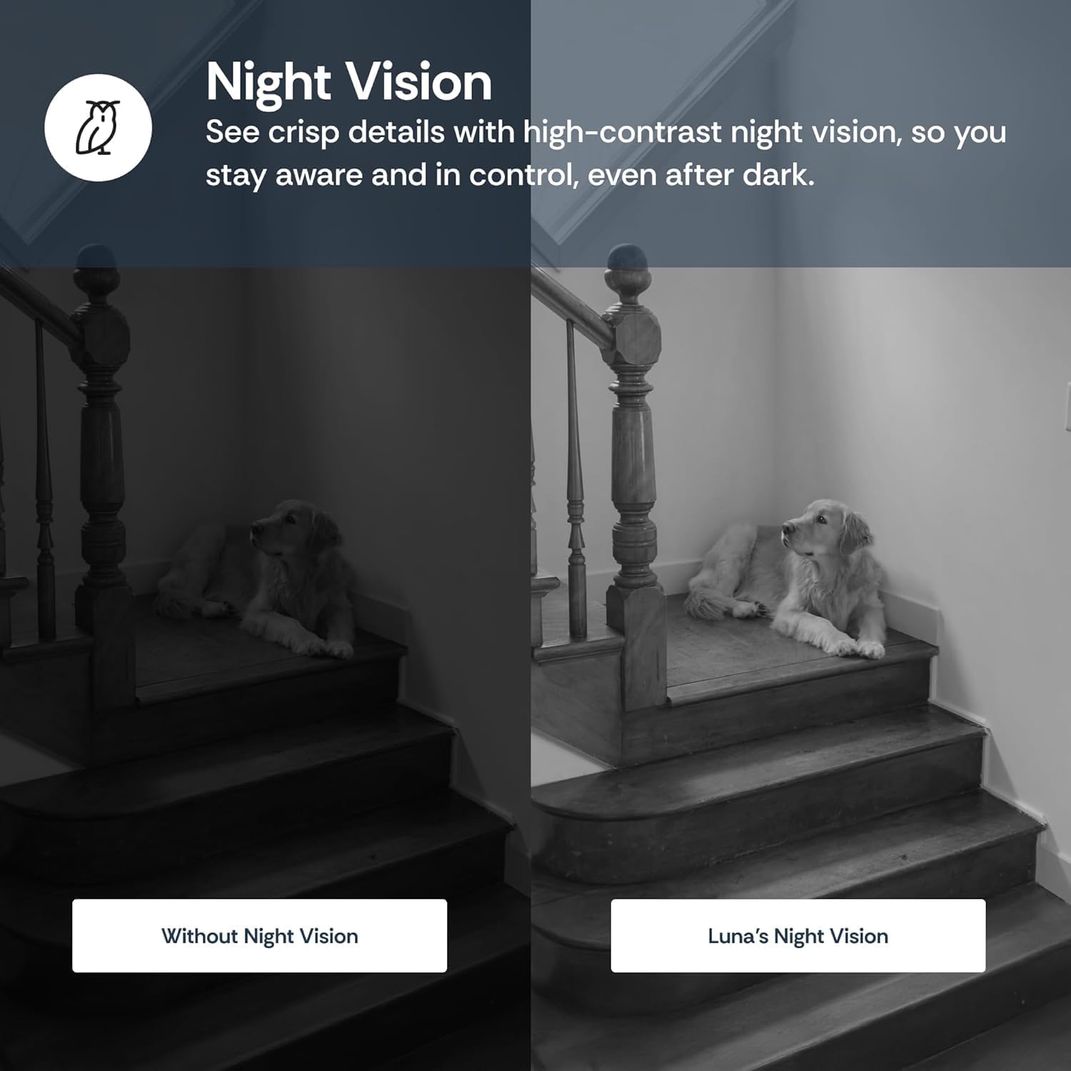 - Two-Way Audio & Night Vision: Stay connected with clear two-way audio, enabling communication from anywhere anytime through the Luna AI app. Infrared night vision ensures clear visibility even in low-light conditions, providing round-the-clock surveillance.