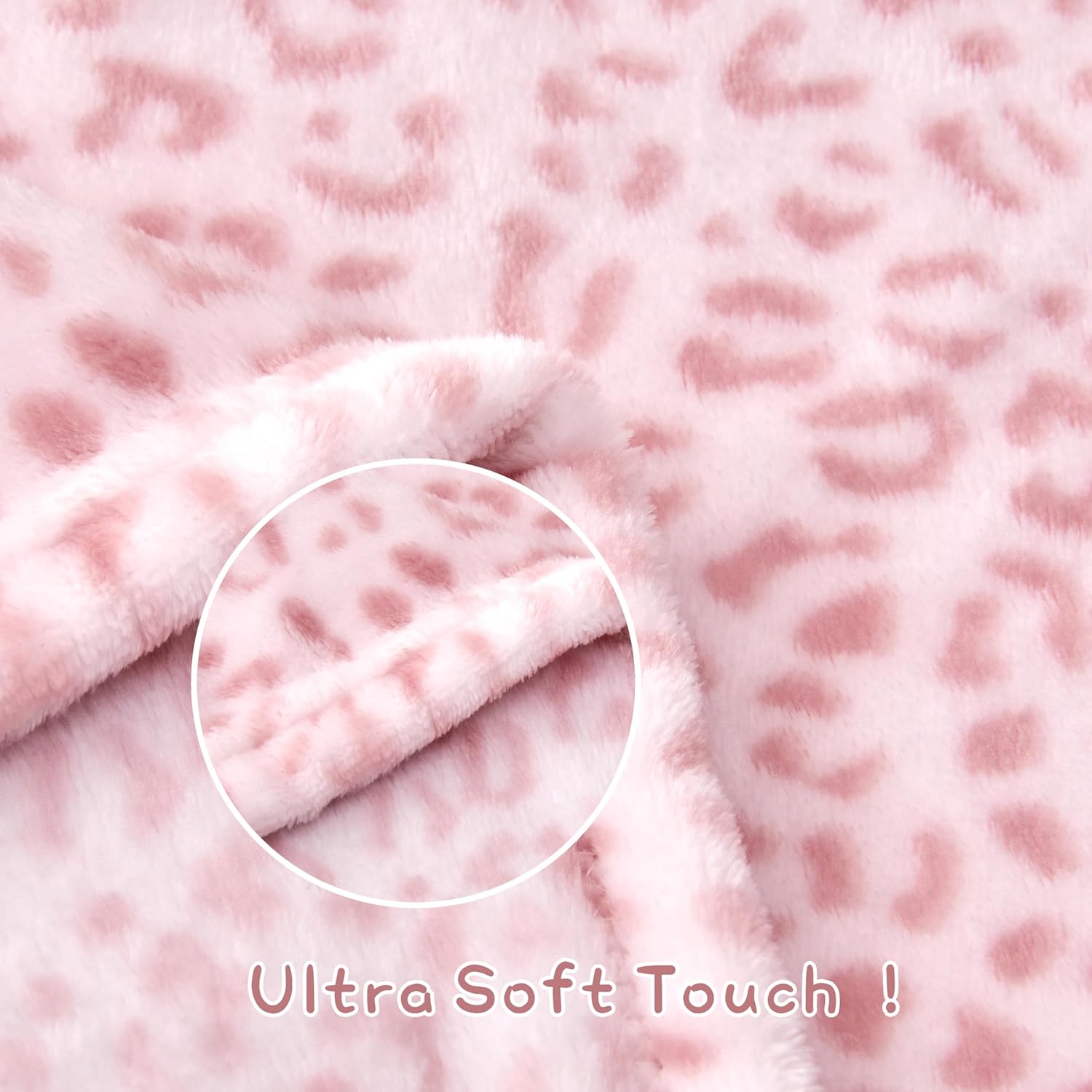 Yurhap Leopard Print Baby Blanket Fleece Baby Blankets for Girls, Ultra Soft Cozy Fluffy Infant Toddler Newborn Receiving Blankets for Crib Stroller, 30"x40", Light Pink