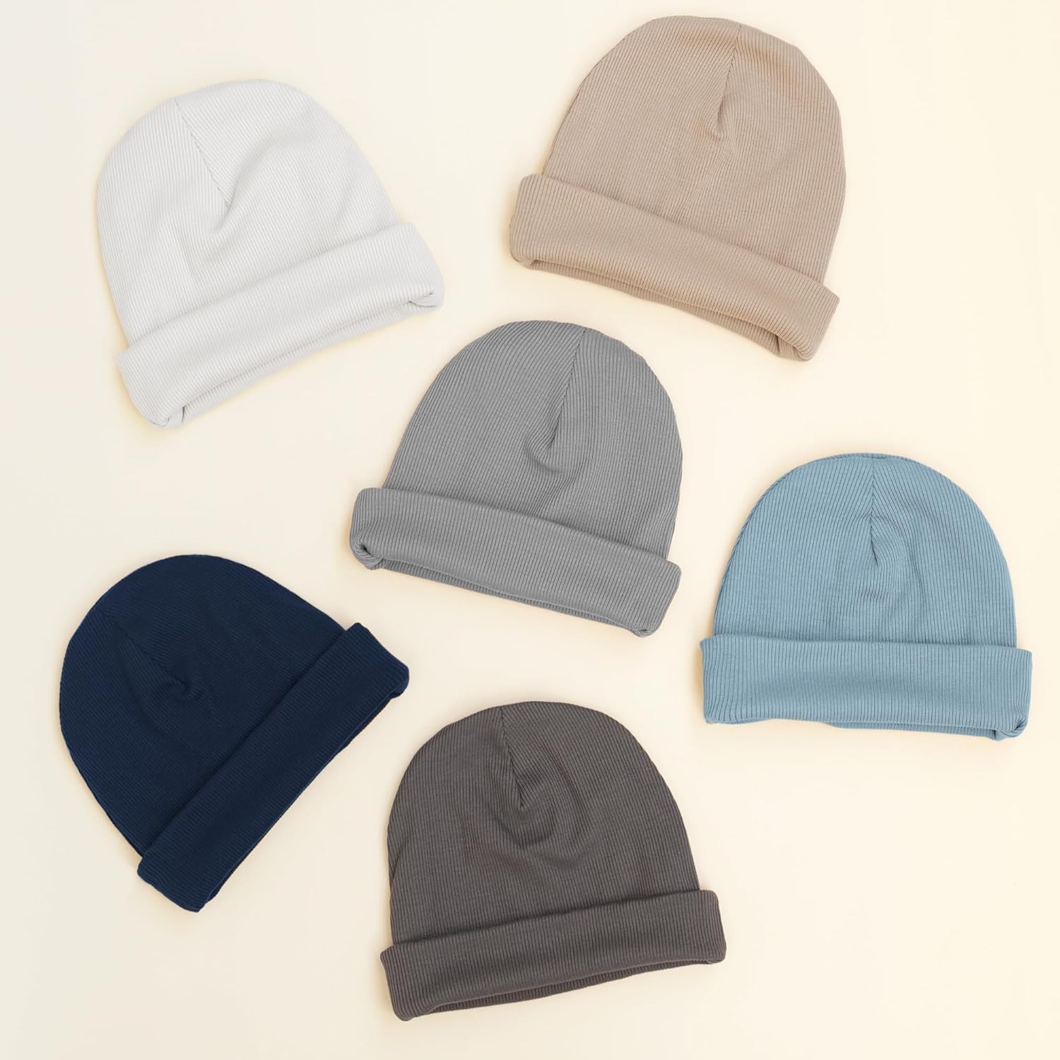 Konssy 6 Pack Baby Beanie Hats for Unisex, Toddler Beanies Baby Girl Boy Hat Warm Cap for Infant, Toddler