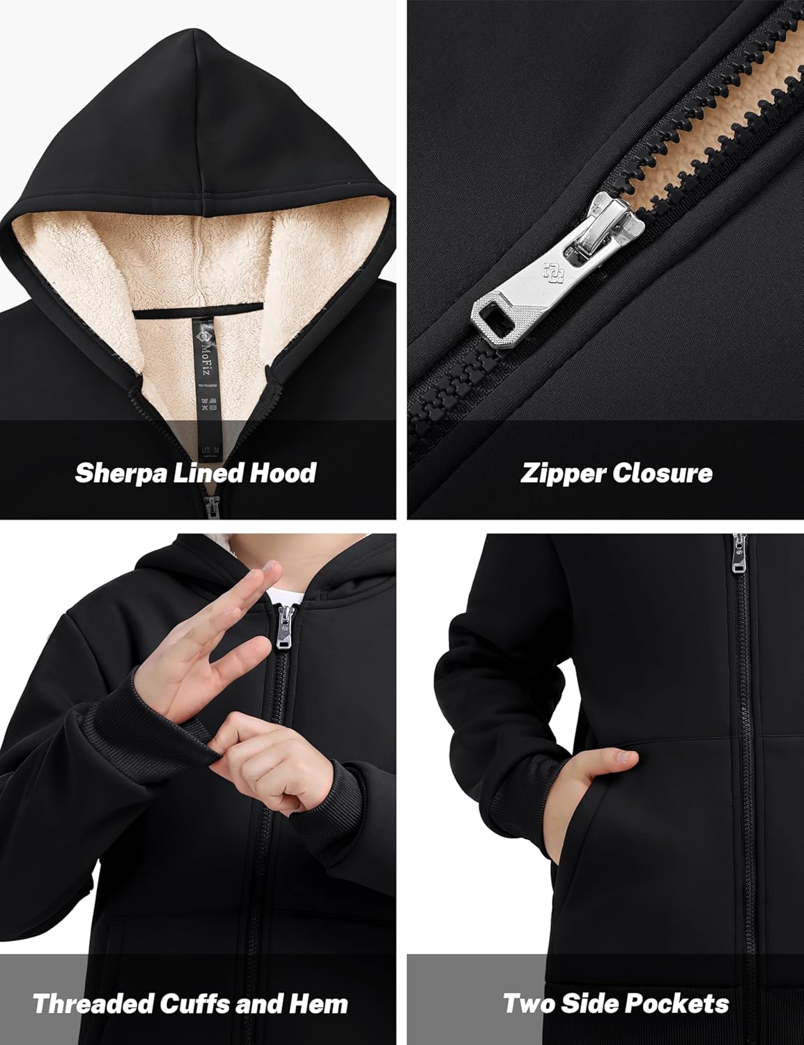 MoFiz Kids Fleece Jackets Sherpa Lined Hoodie Jacket Hooded Zip up Sweatshirt Coats for Boys Girls Winter Casual Outerwear