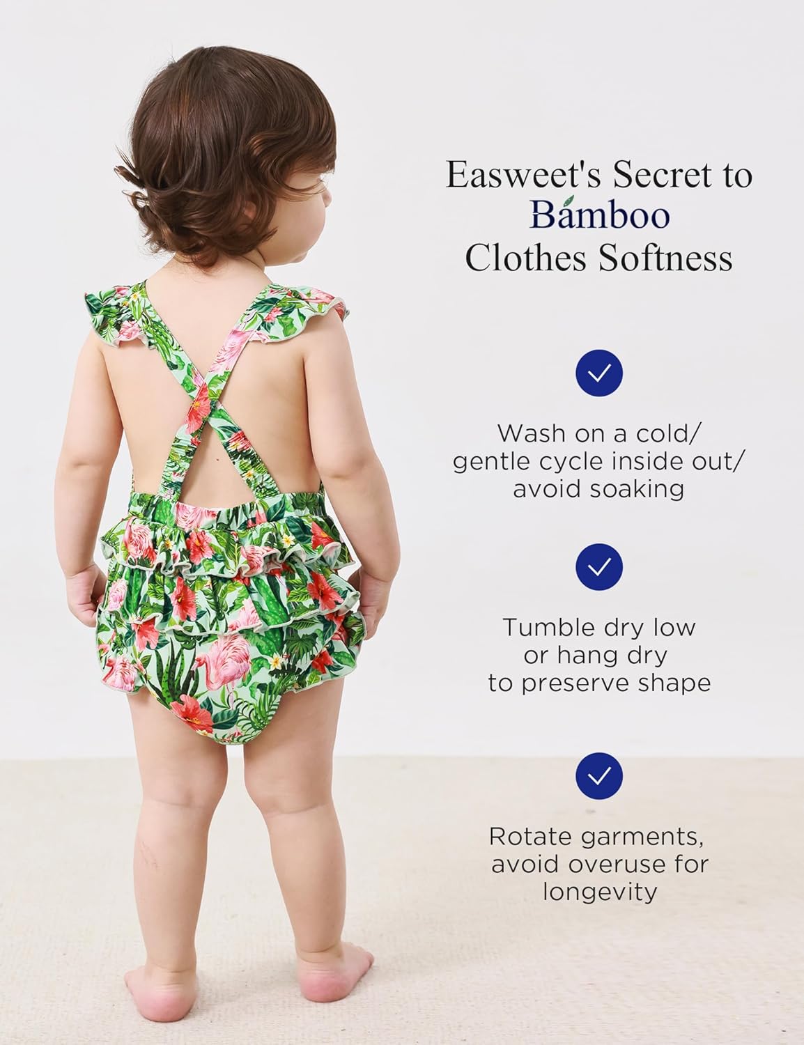 • Bamboo Viscose Fabric: Made from high-quality bamboo viscose, this baby girl bodysuit is soft and breathable, providing a silky feeling. It features four-way stretch, making it perfect for active little ones