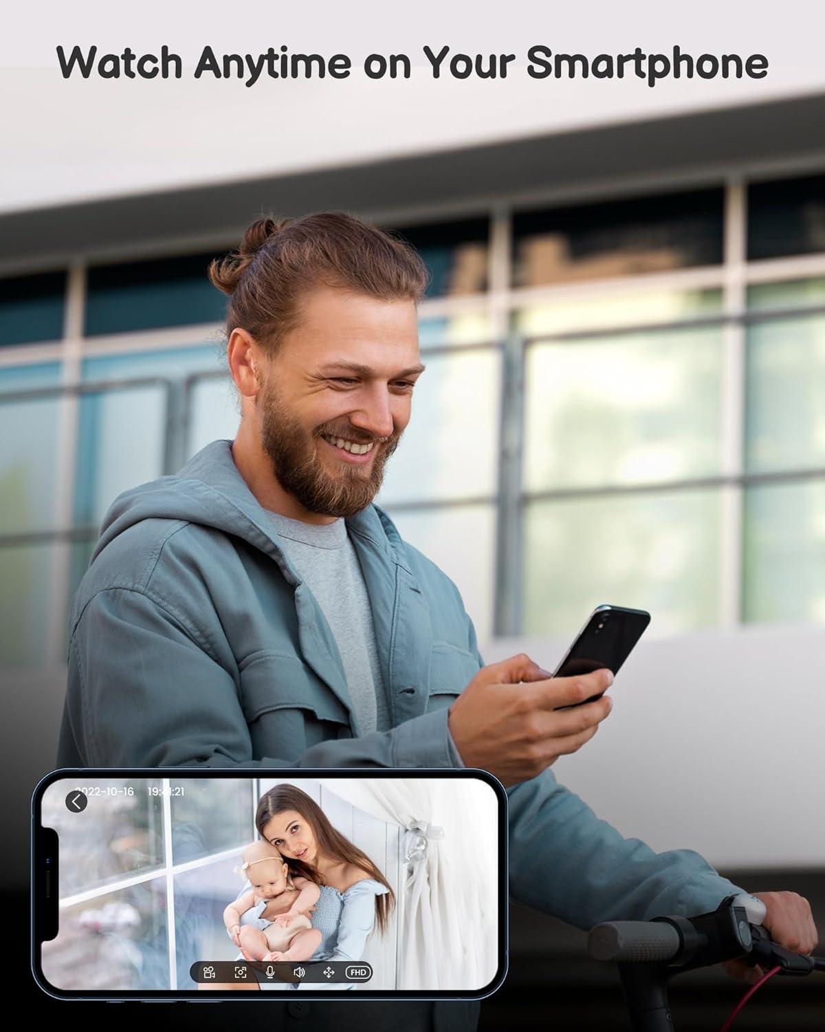 - Motion & Sound Detection: The video baby monitor comes with advanced motion and sound sensors. Whenever the baby camera detects your baby moving or crying, it will notify you through both the monitor and your smartphone. Even if you are busy cooking or doing the dishes, you can be there for your baby when they need you. Giving you peace of mind.
