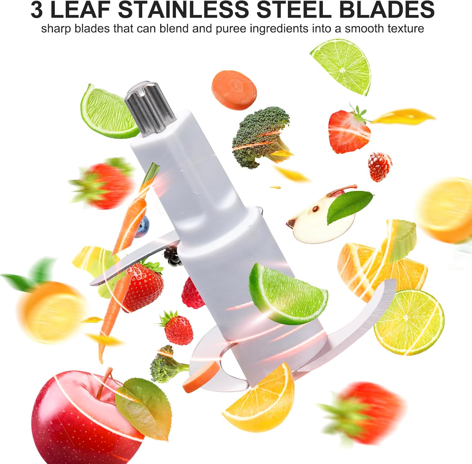 - Quick and Effortless Operation: Features three sharp blades and a high-power motor for fast and efficient blending. Press to start, release to stop—create baby food with the perfect consistency in seconds. Operates quietly, so you can prepare meals without disturbing naptime