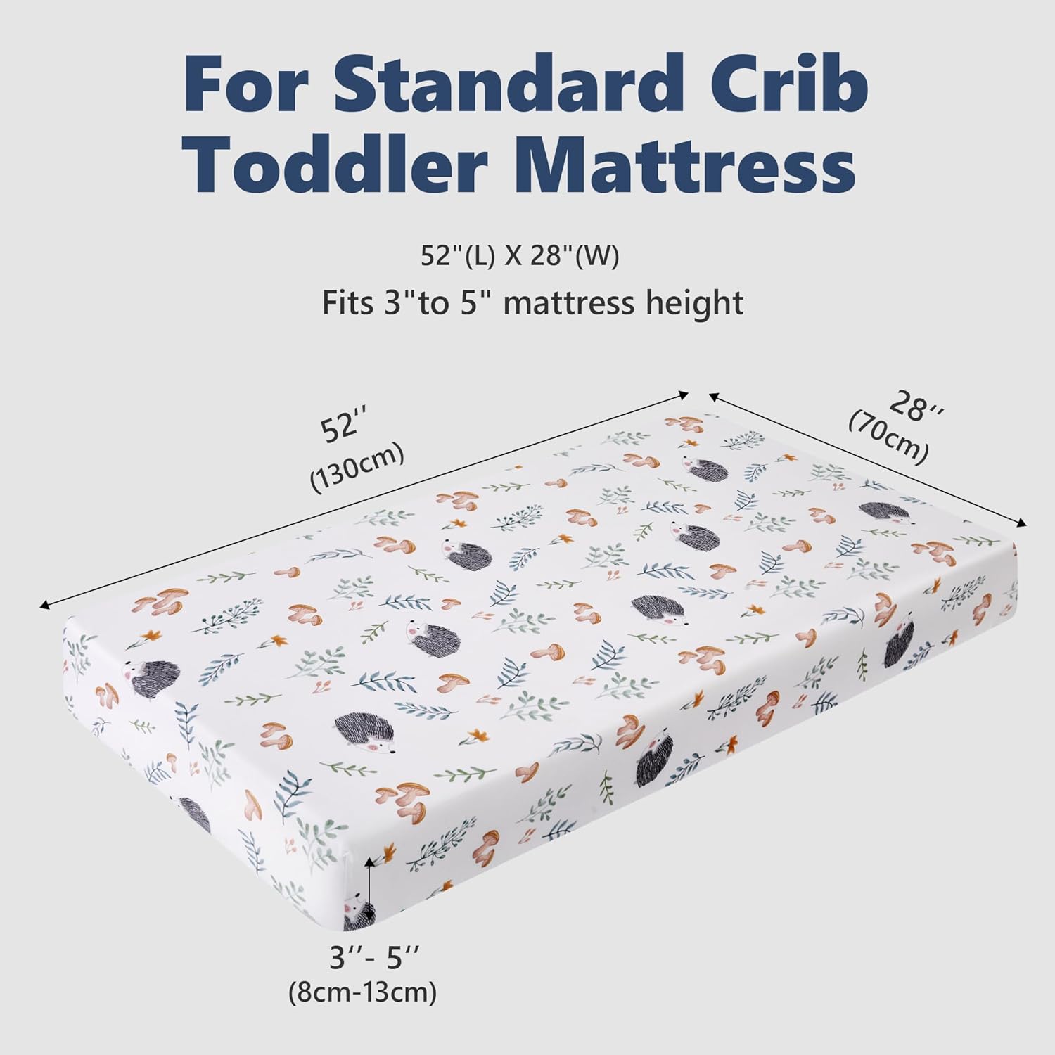 TILLYOU Baby Crib Sheets for Boys Girls, Super Soft Toddler Bed Sheets, 2 Pack Sheets for Standard Crib Mattress 28x52in, Hedgehog Garden and Green Leaves