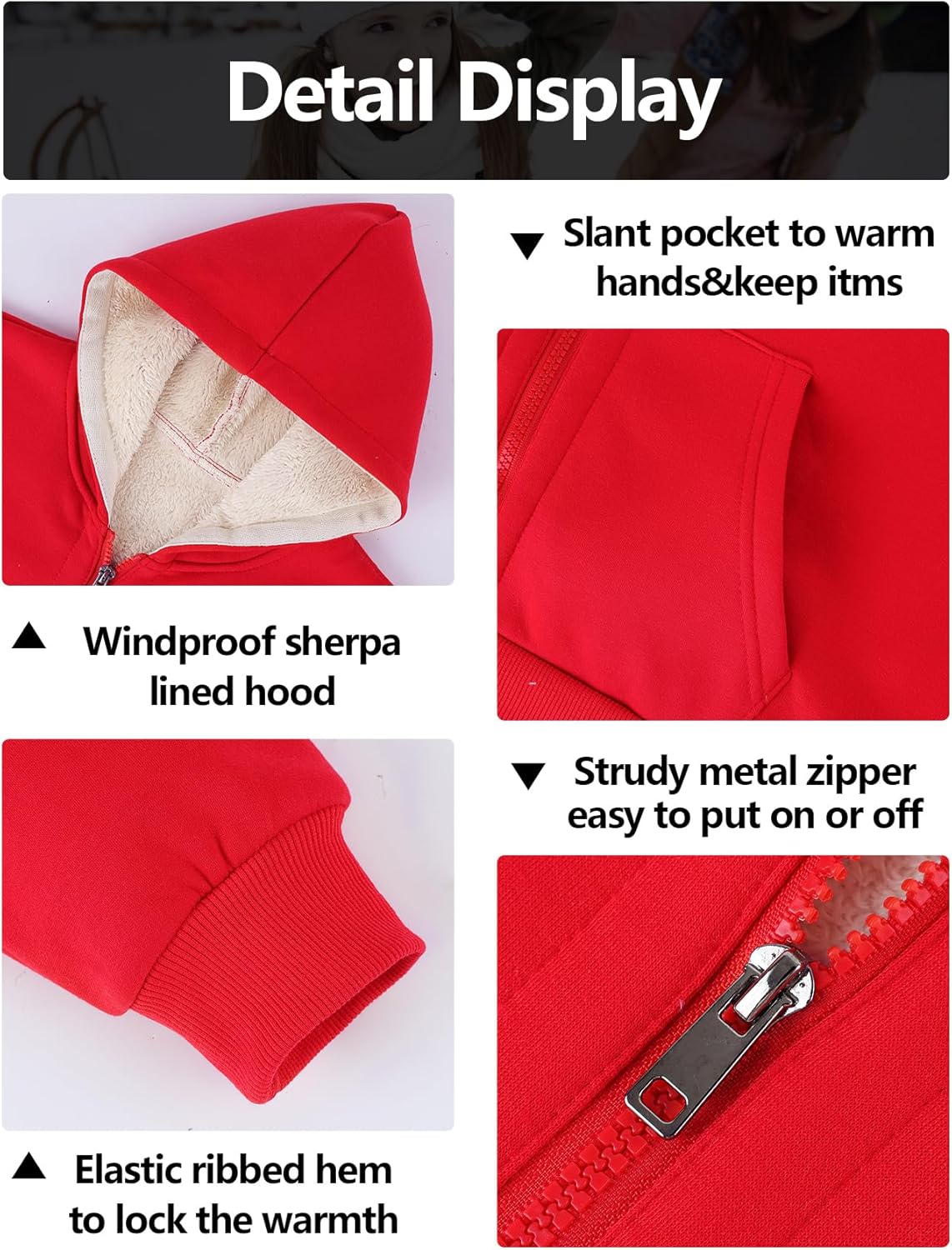 - Comfortable & Warmth:The unisex sherpa fleece lined jacket is made of high quality fabric, faux sherpa lined for softness and durability. The thick sherpa fleece lining kids zip up hoodie is cozy and warm, perfect for outdoor activities in cold weather.