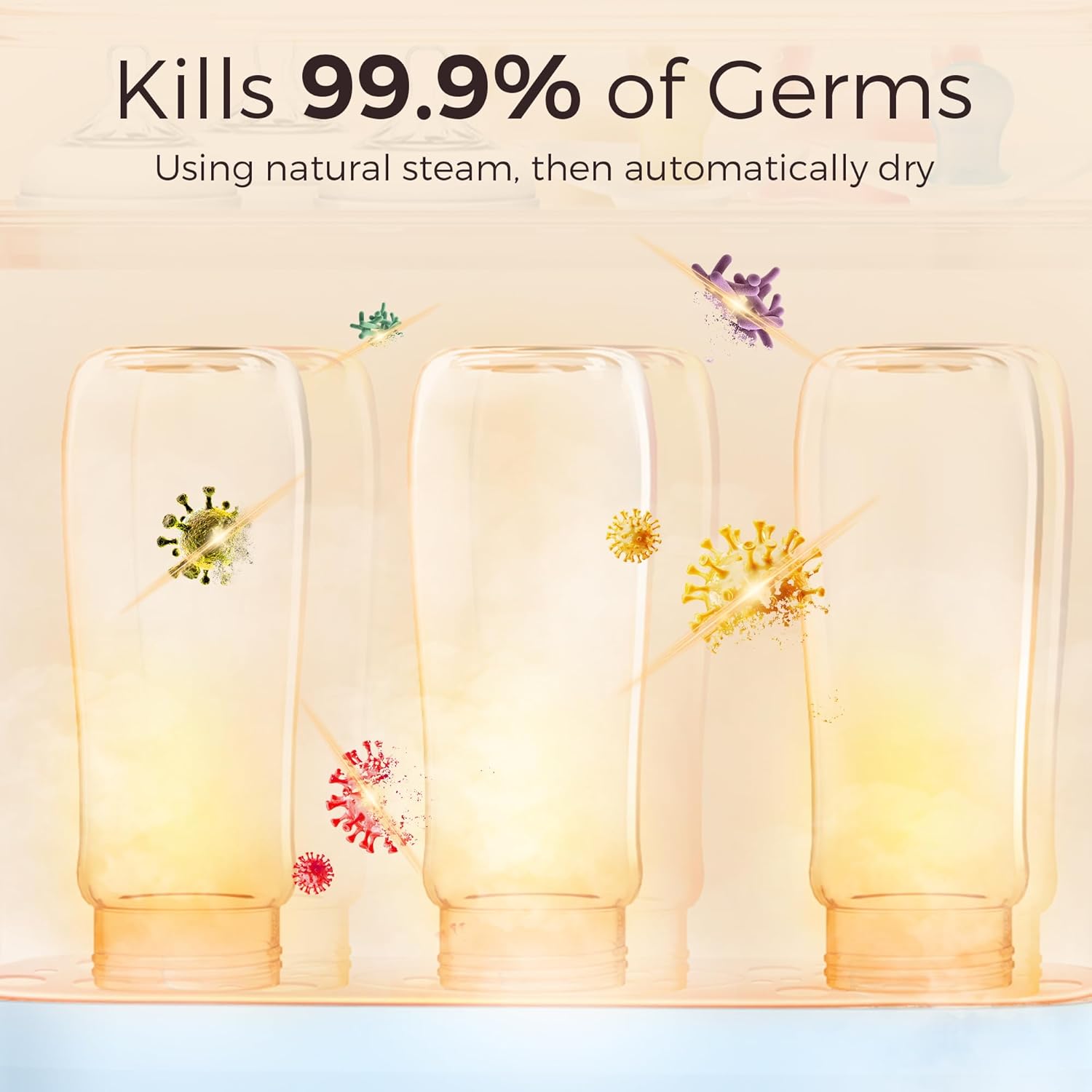 - Designed with a fully automatic operation and LED countdown display, bottle sterilizer is easy to use and ensures precise and safe sterilization. Its spacious design allows for the sterilization of up to 8 bottles at once