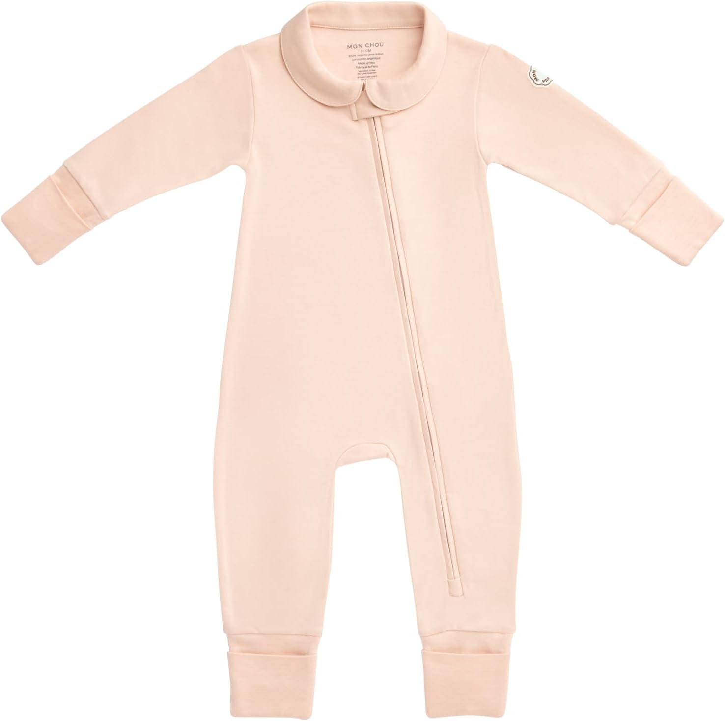 • THOUGHTFULLY CRAFTED: These premium infant pajamas feature a rounded polo collar, top to bottom double zipper with safety tab, and fold over arm and leg cuffs that make covering and uncovering your baby’s hands and feet a breeze; Mon Chou buttery soft pajamas are designed with no itchy tags and thoughtfully placed seams for an irritation-free wearing experience