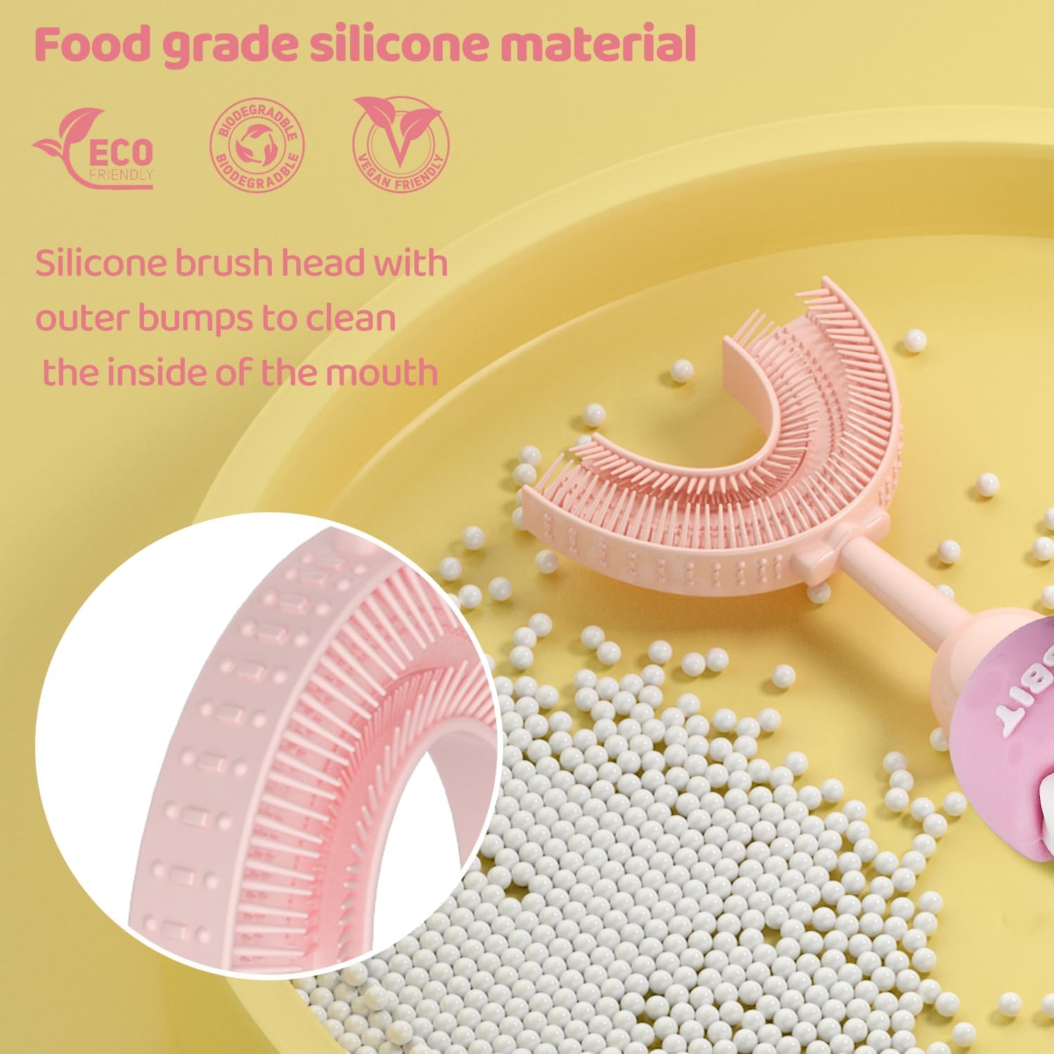 - 【Quality Brush Head】 The soft U-shaped brush head is crafted from food-grade silicone with ultra-soft bristles, making it an excellent choice for children’s delicate and sensitive teeth. This baby toothbrush ensures a gentle brushing experience.
