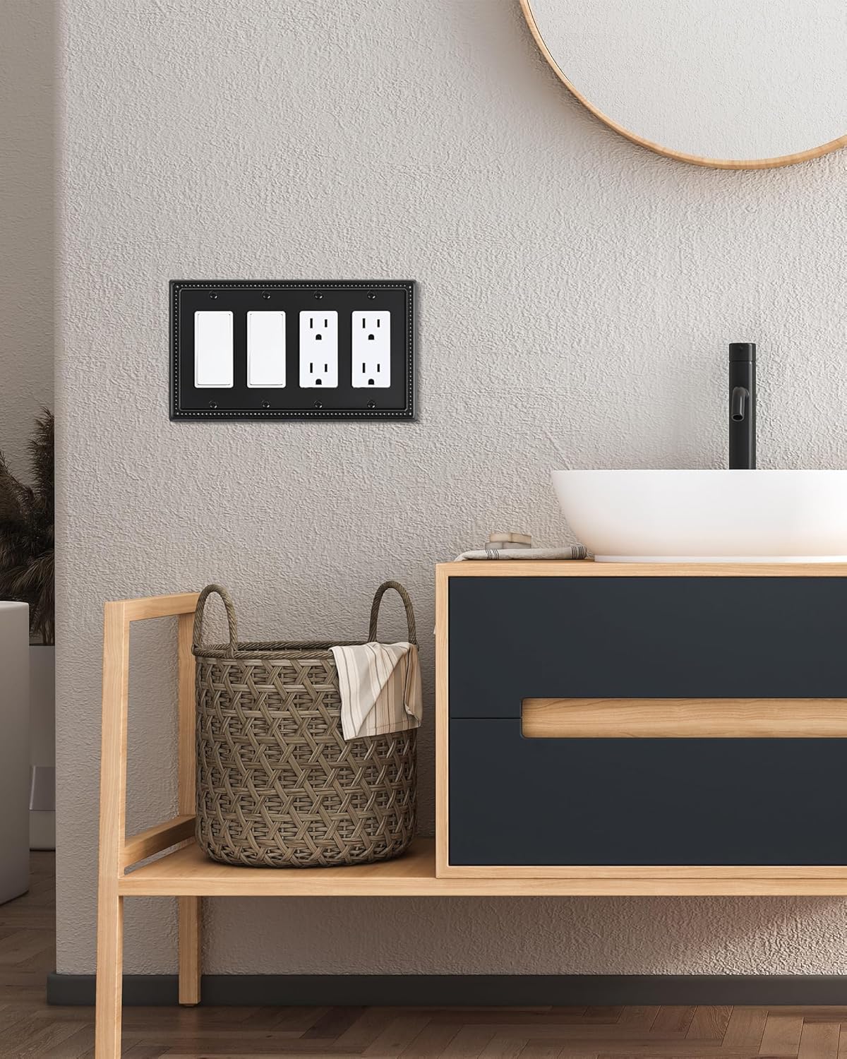 - Timelessly Elegant - The quad decorator outlet covers feature an exquisite black finish with a traditionally styled beaded border. Offering a functional yet elegant enhancement to your home decor. Stylish wallplate effortlessly blends practicality with a refined decorative accent and sophisticated charm.