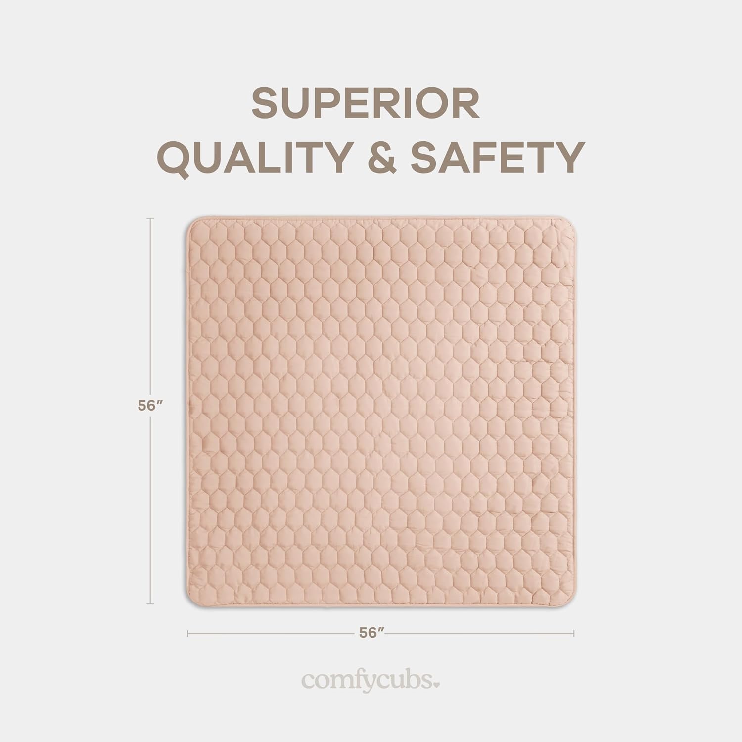 Comfy Cubs Square Kids Play Mat - 56 x 56 inches Soft Quilted Baby Floor Mat with Non-Slip Bottom - Plush Design for Toddlers' Playtime and Relaxation - Comfortable and Durable - Blush