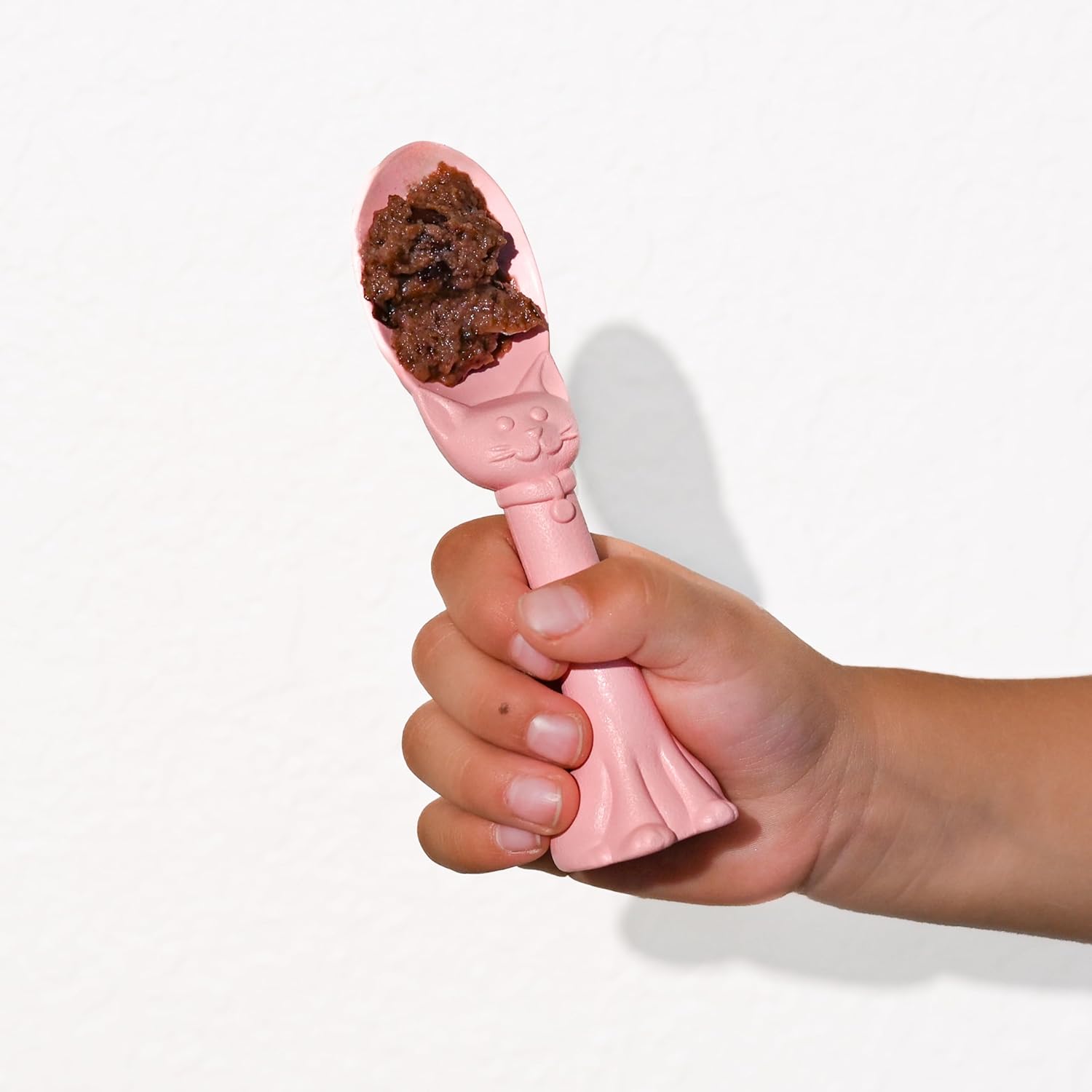 - DESIGNED FOR TODDLERS: Our spoons and forks feature a fun and unique 3D design. Their cute cat- and dog-shaped handles are ergonomically crafted for a comfortable grip and can stand upright on the table. Recommended for ages 12 months to 4 years.