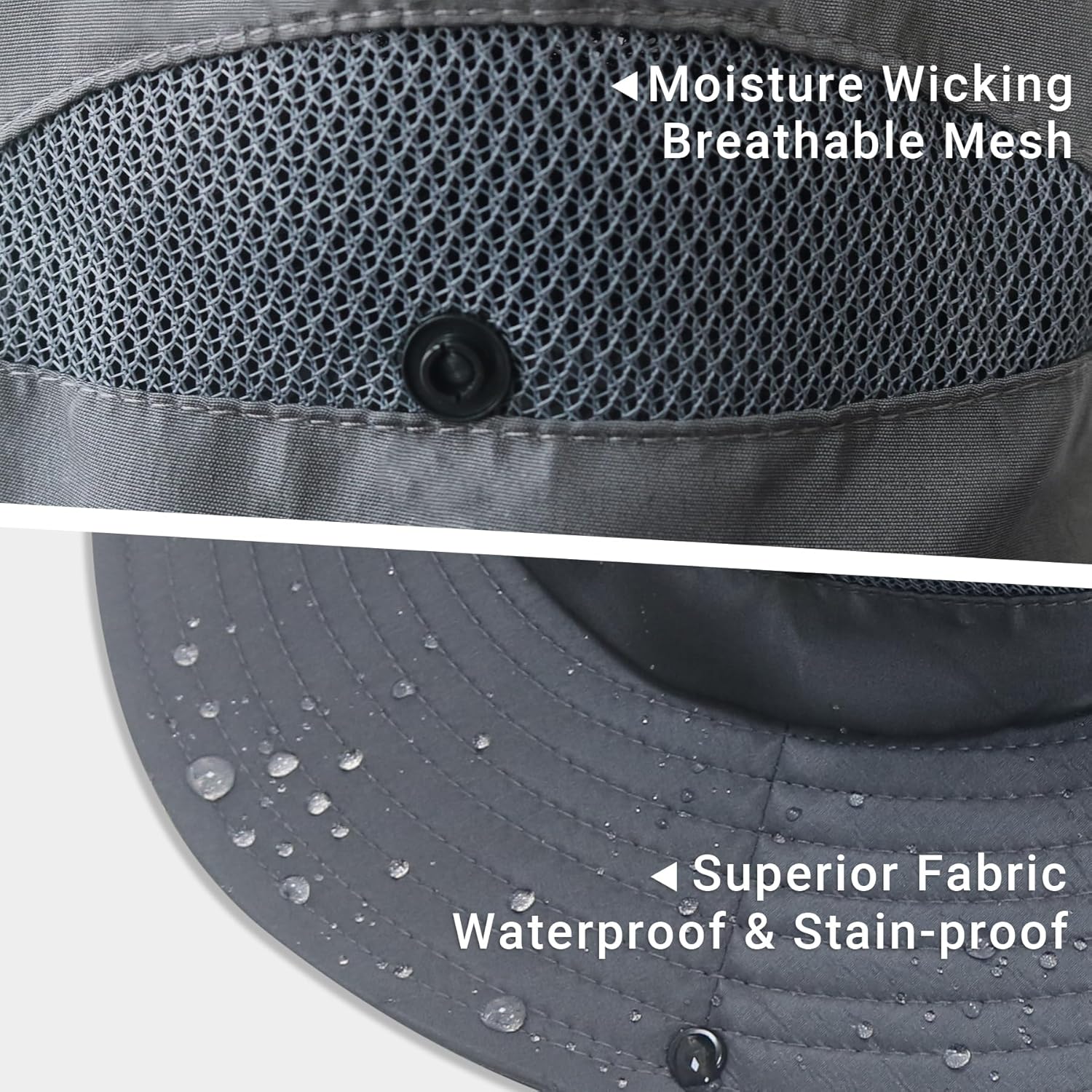 • ADJUSTABLE & WATERPROOF: The quick-drying fishing hats fit for most men and women, featuring an adjustable drawstring and chin strap. The sun hats can stay well on your head and withstand some drizzling rain in rainy days