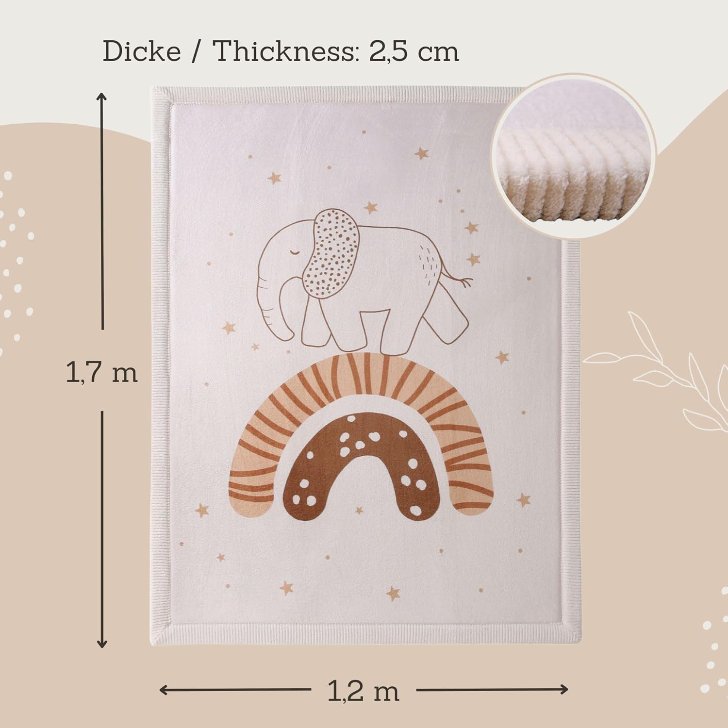 Stylish Coral Baby Play Mat for Floor 47" x 67" Rainbow Elephant – Soft 1" Thick High-Density Memory Foam Nursery Rug,Kids Rug with Non-Slip Backing for Crawling & Playing, Playroom Rug, Kids Carpet