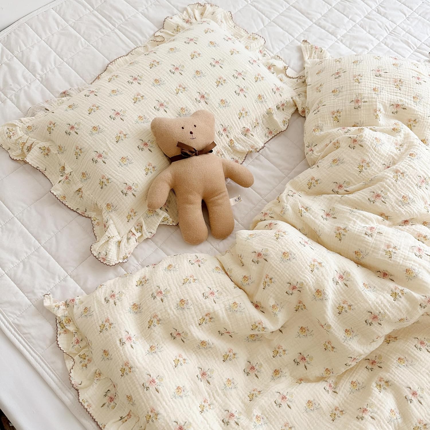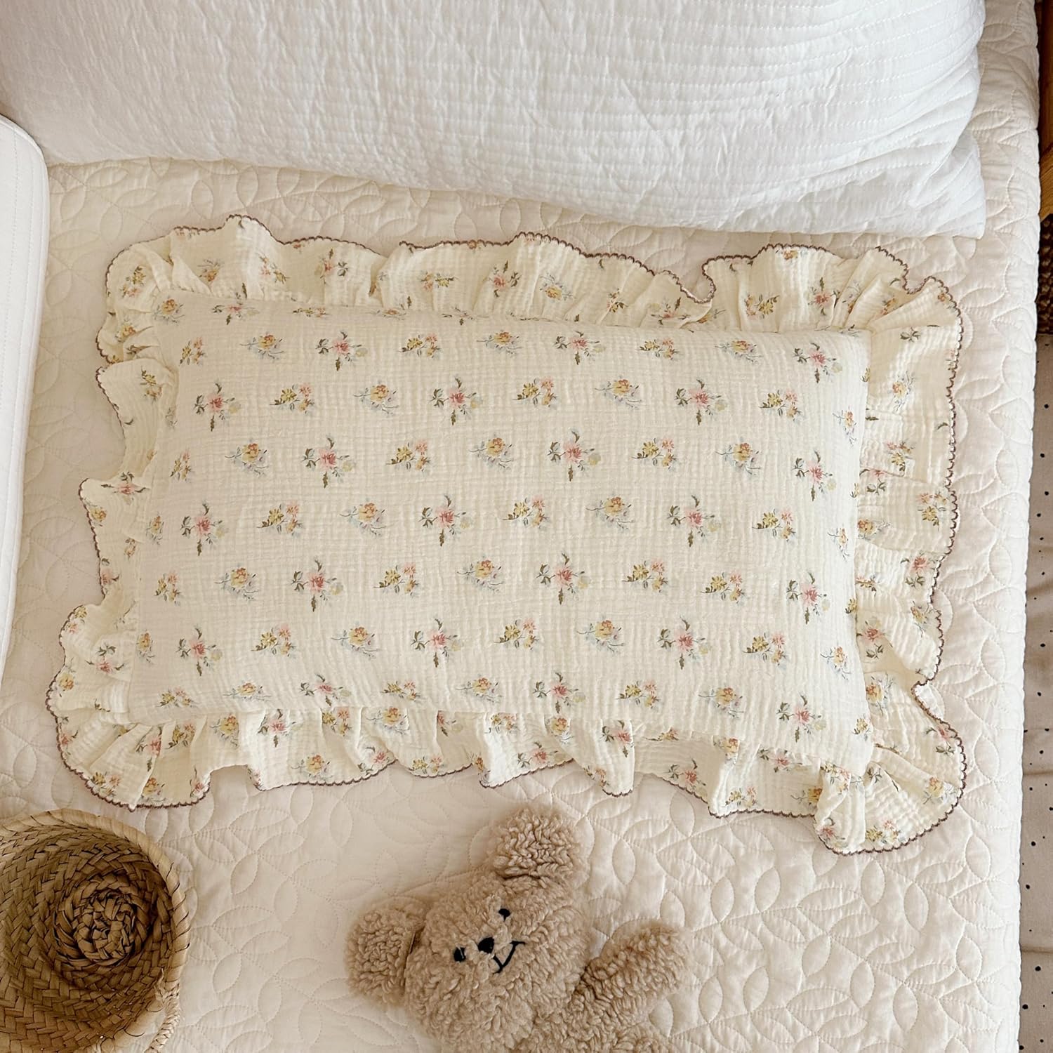 - 【Elegant Design】Our muslin cotton pillow cases king are designed with sweet Azalea flowers prints and 2 inches retro ruffles edges all around. These shabby chic pillowcase will accent your bed with a romantic and vintage touch, perfect be a great addition to your farmhouse decor room. Envelope closure pillowcase ensures easy access to your pillows.
