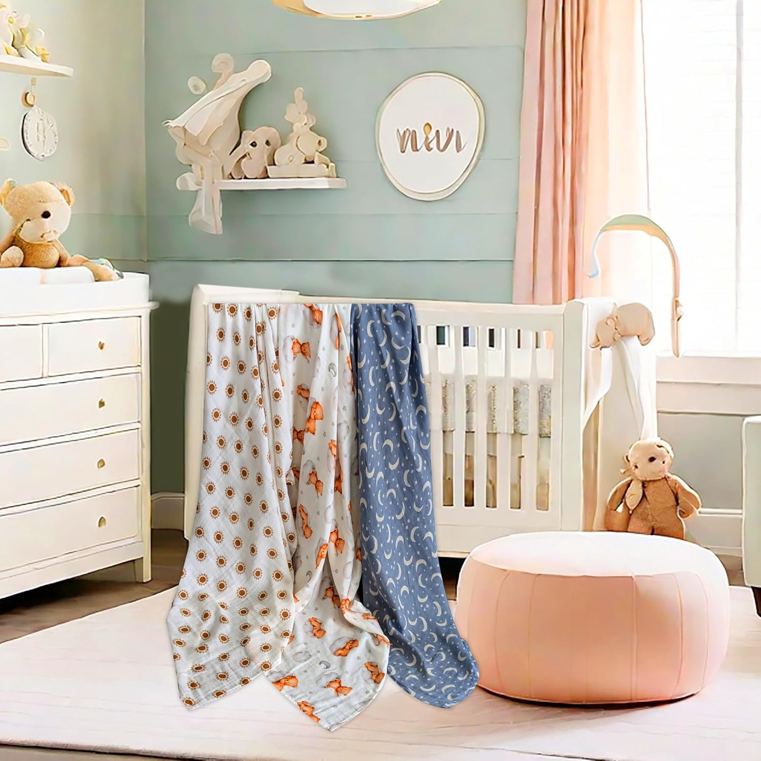 - TIMELESS & STYLISH DESIGN : This muslin baby blanket features patterns that never go out of style. Baby boys and girls will look adorable swaddle in it and feel cozy with a snuggly blanket that grows with them.