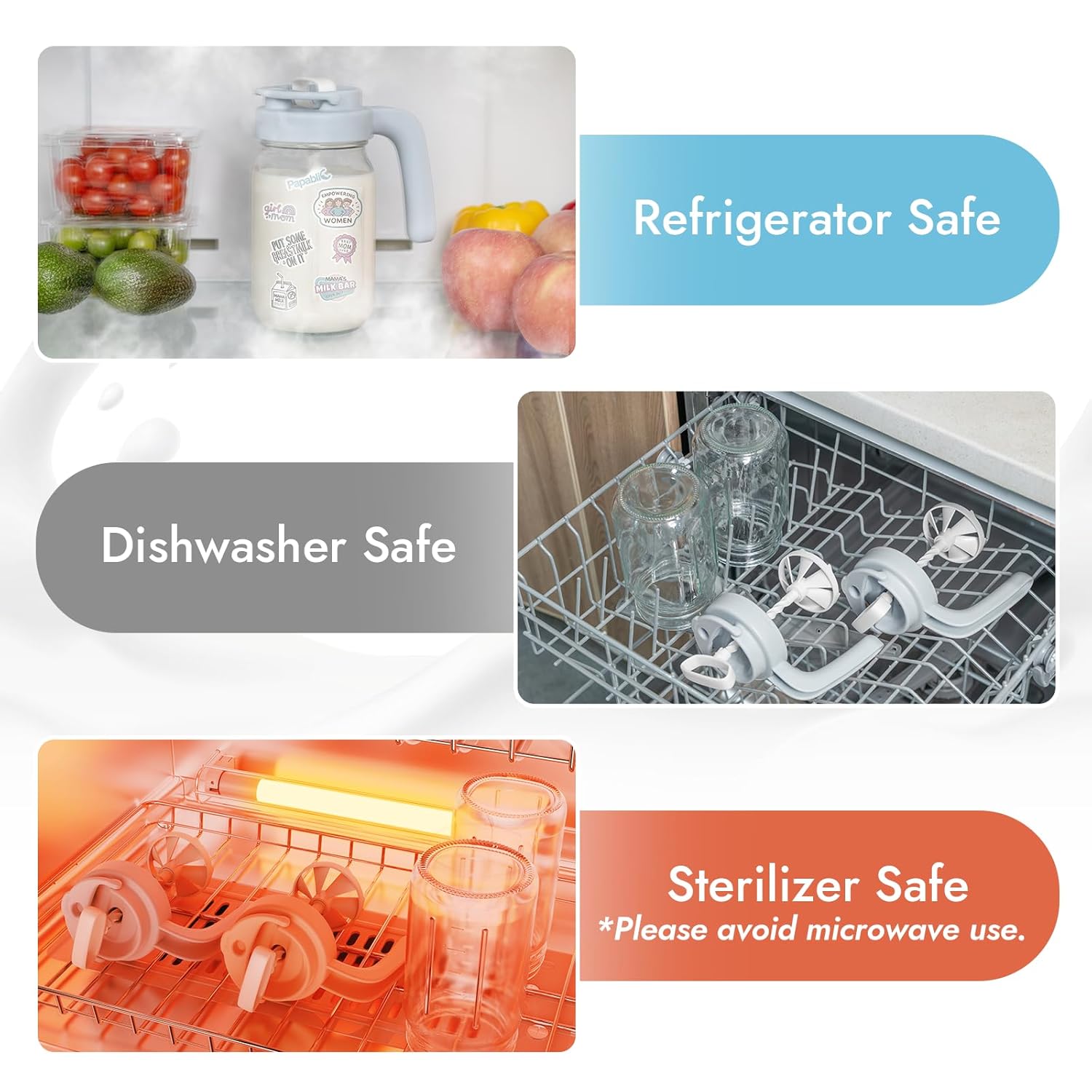 - 𝐒𝐚𝐟𝐞 & 𝐃𝐮𝐫𝐚𝐛𝐥𝐞 𝐆𝐥𝐚𝐬𝐬 𝐃𝐞𝐬𝐢𝐠𝐧: Built with a heavy-duty glass mason jar and a BPA-free, food-grade plastic lid, this formula mixing pitcher offers a durable, non-toxic, and odor-free solution for preparing formula or storing breastmilk. It's a safer and longer-lasting option than plastic containers.