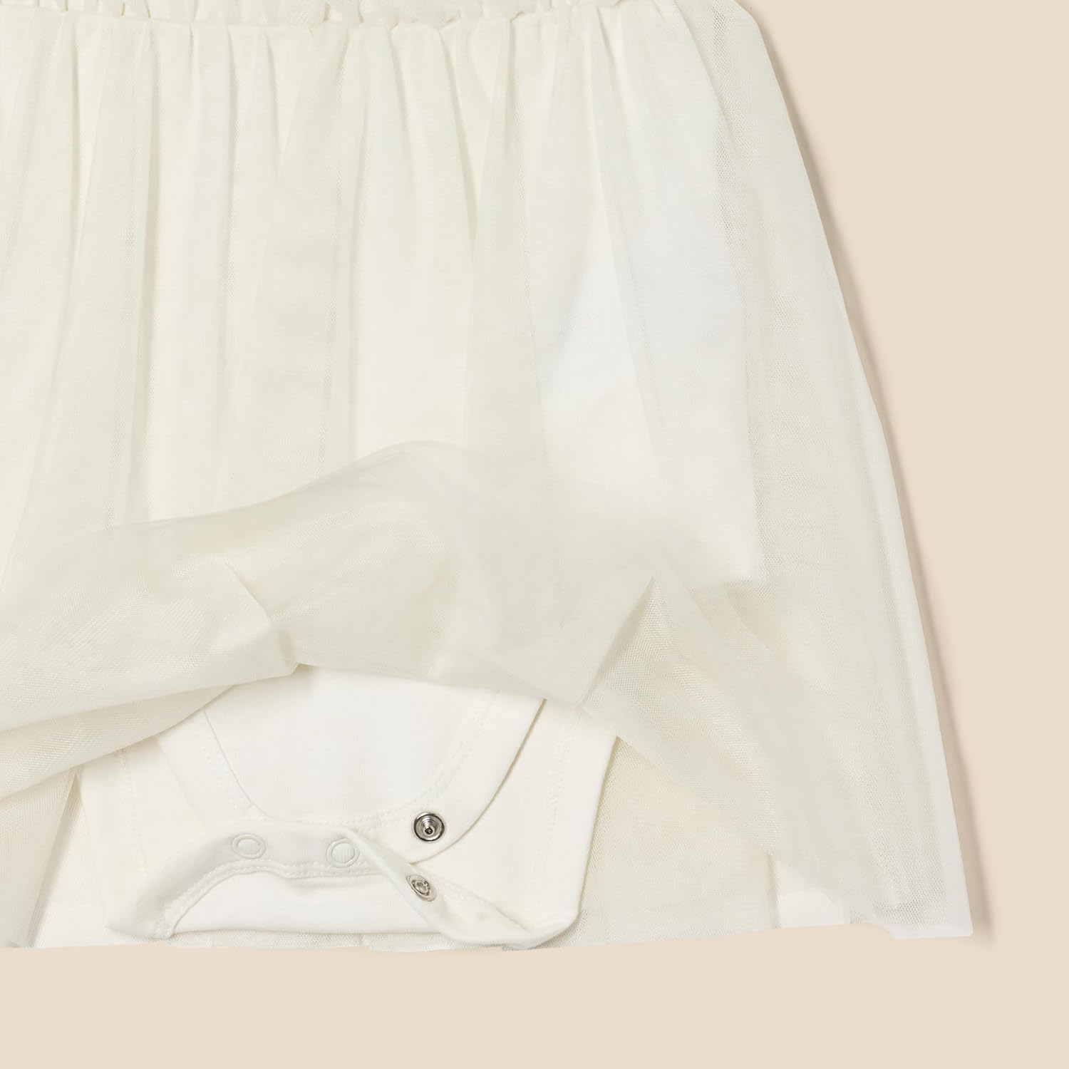 • KNIT BODYSUIT DRESS WITH TULLE OVERLAY: Easy knit dress with tutu inspired tulle overlay skirt for special occasions or everyday wear. Adding a princess like touch to your little one's day.