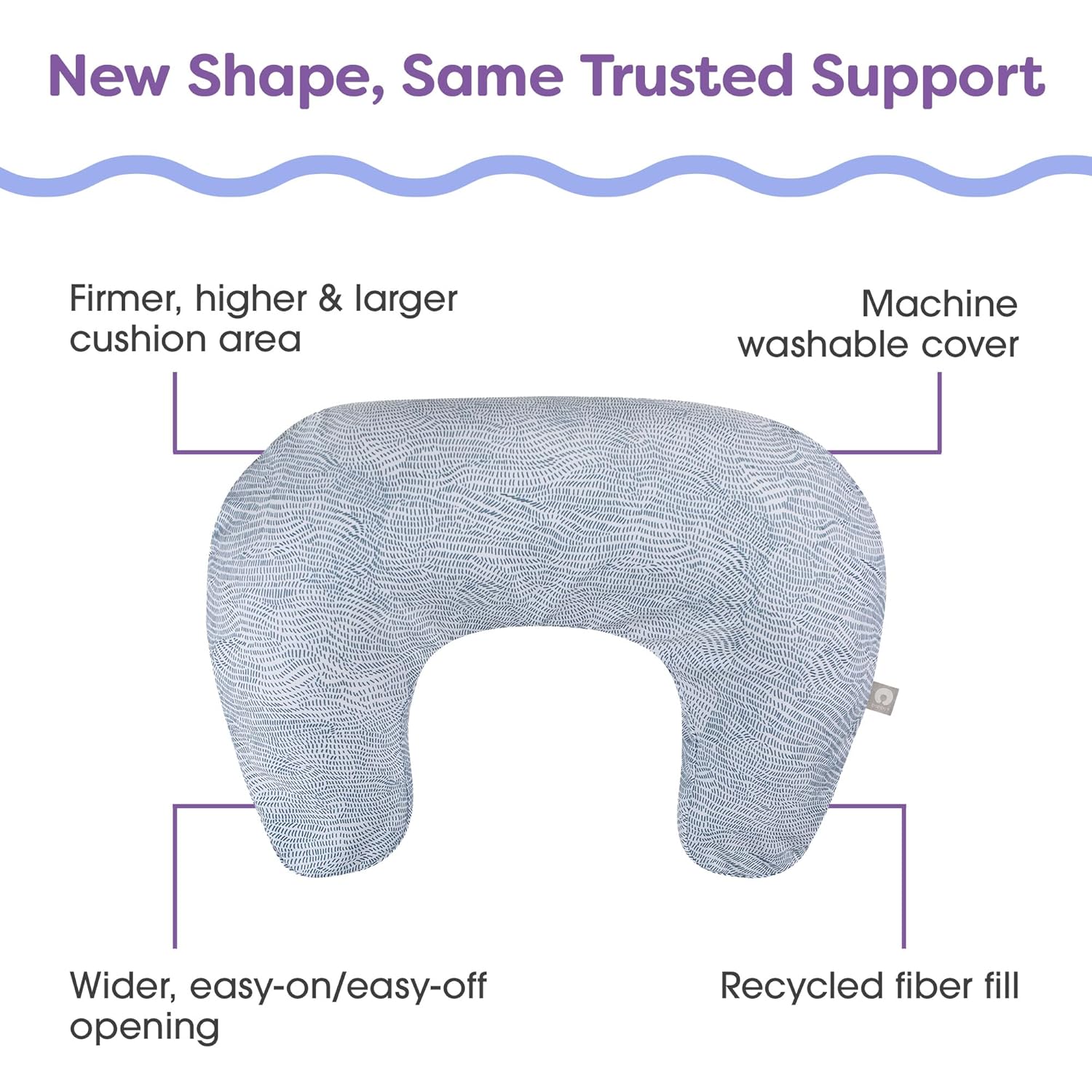 - Hugs Every Curve: Baby feeding pillow features a wider opening and flexible fiber fill to embrace more body types comfortably without breaking or tearing like foam; our updated Boppy pillow with patent-pending design effortlessly slides around the waist with one hand for easy adjustments