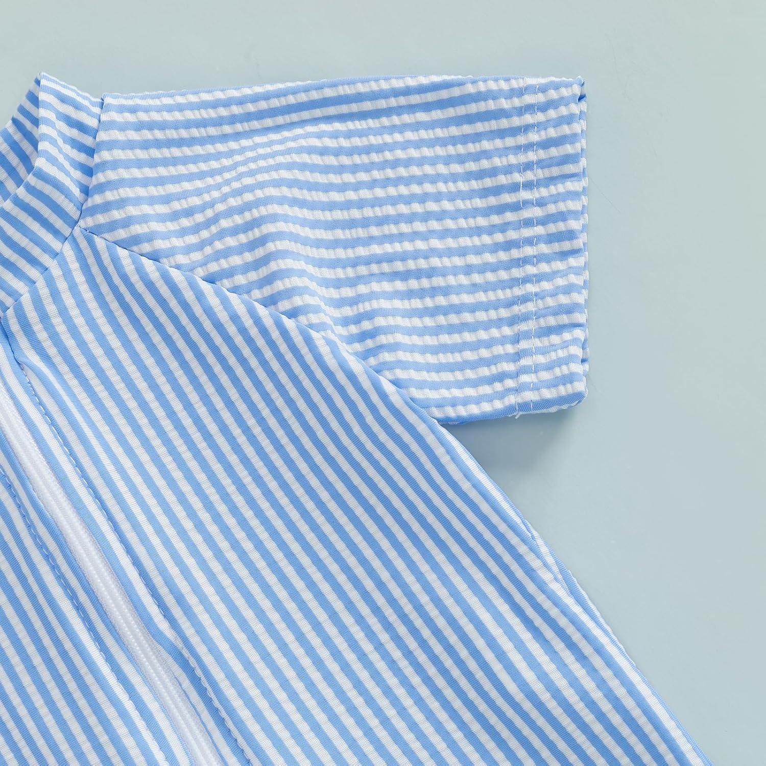 • Design: Half zipper swimsuit and round neck adds a touch of convenience, making it easy for your little one to put on and take off; Infant swimsuit, infant bathing suit, seersucker baby girl swimsuit, seersucker toddler girl swim; Simple striped makes swimsuits fashionable and beautiful, which are loved by little boys