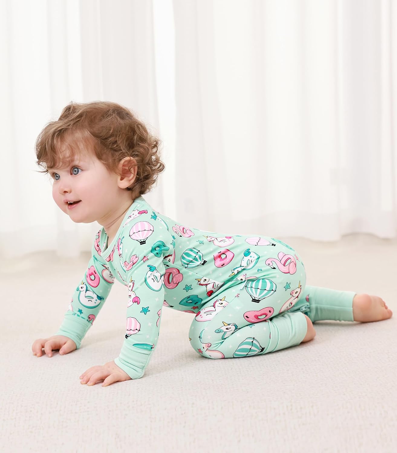 - Design: DreamHalo onepiece jumpsuit features a U-shaped 2-way YKK zipper, making it easy to dress and undress your little one. Thoughtful mittens add extra practicality. Each print is one-of-a-kind which is crafted with care and creativity by our professional design team, ensuring your little ones lounge in style. Tagless label is designed for your baby's sensitive skin.