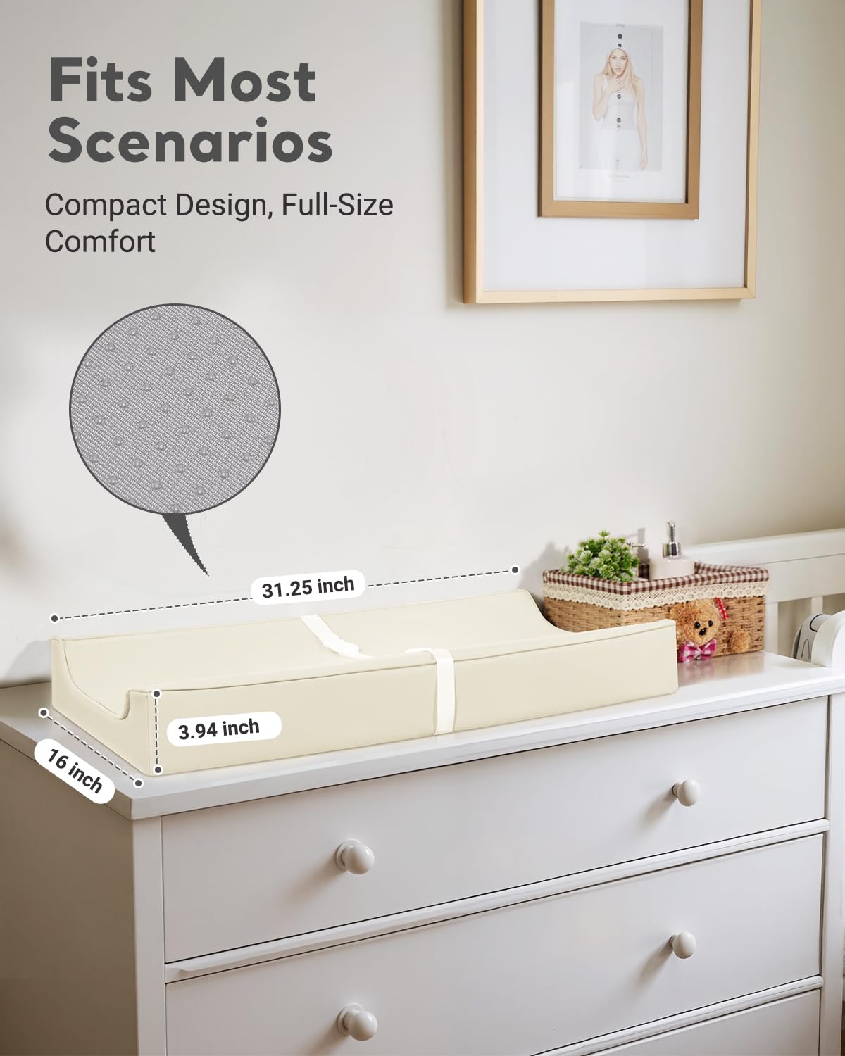 - Ultra-Thick & Non-Slip Safety: 4-inch extra-thick foam provides cushioning comfort, while the non-slip back keeps the pad securely in place on any surface—ideal for dressers, cribs, or travel