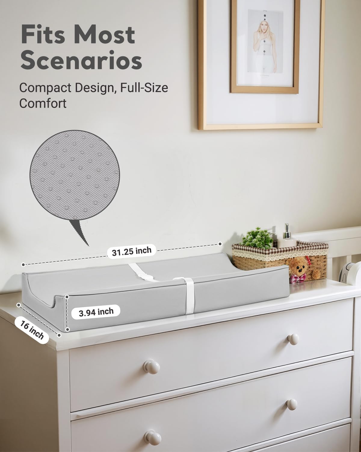 - Ultra-Thick & Non-Slip Safety: 4-inch extra-thick foam provides cushioning comfort, while the non-slip back keeps the pad securely in place on any surface—ideal for dressers, cribs, or travel