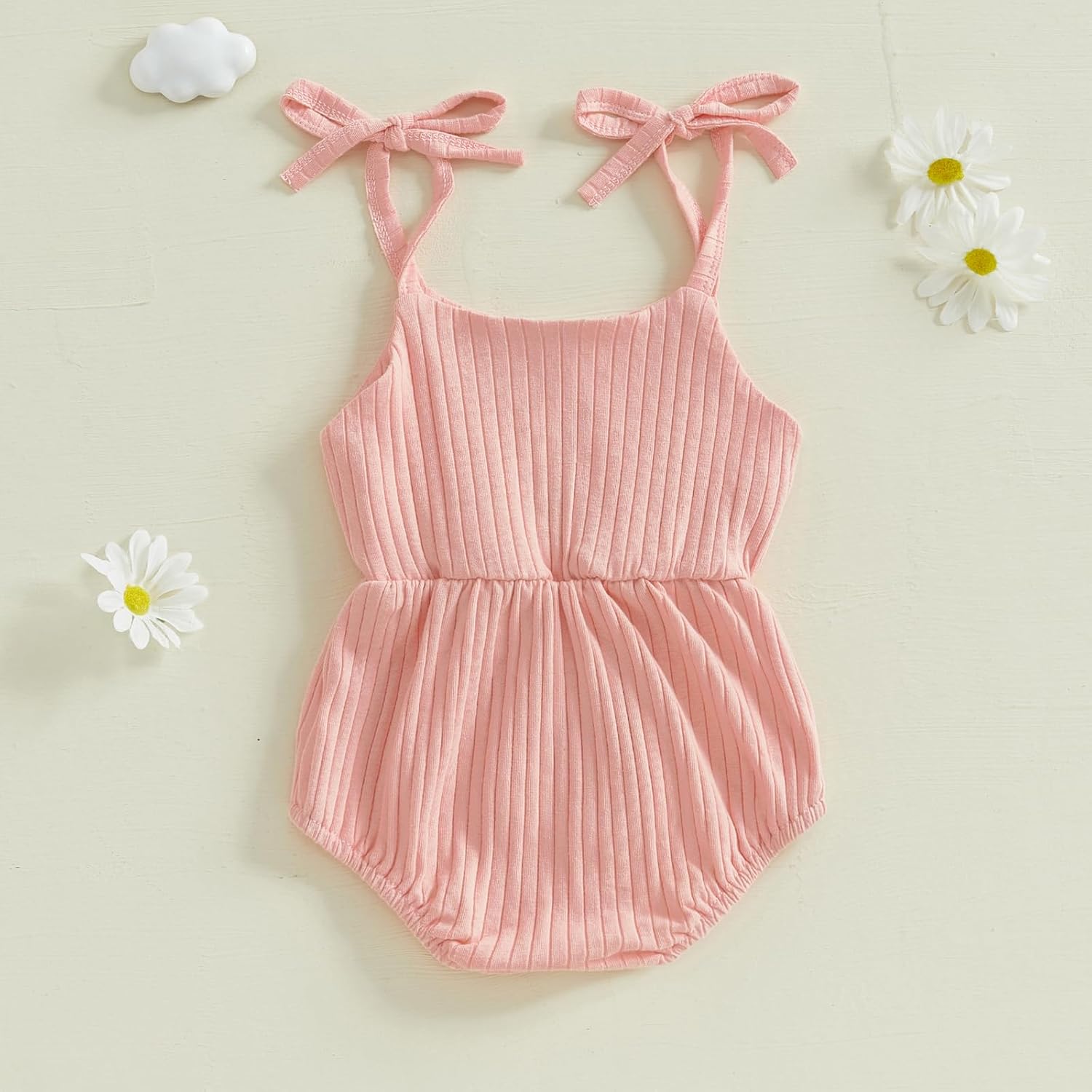 Newborn Infant Baby Girl Romper Ribbed Knit Sleeveless Spaghetti Strap One Piece Jumpsuit Bodysuit Summer Clothes