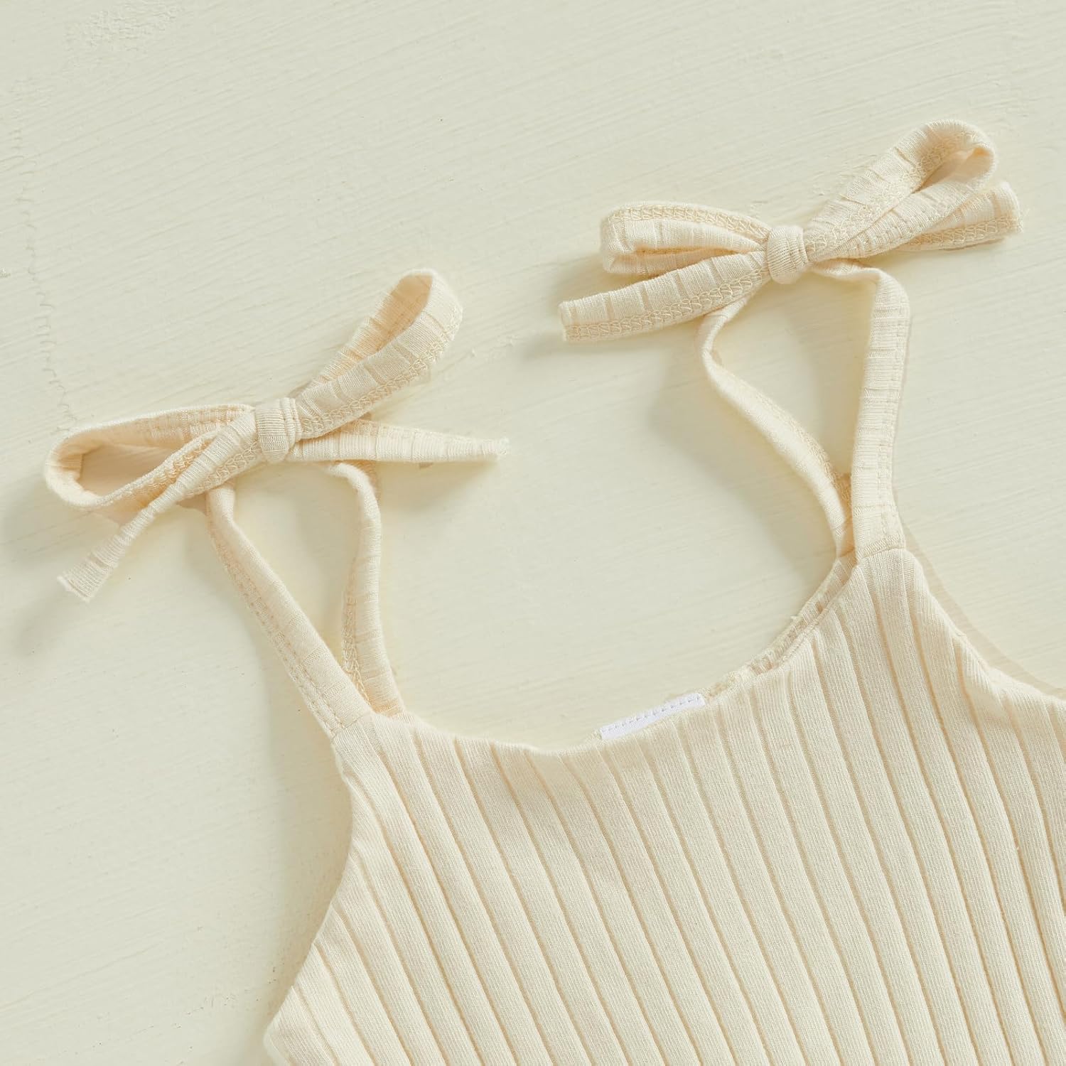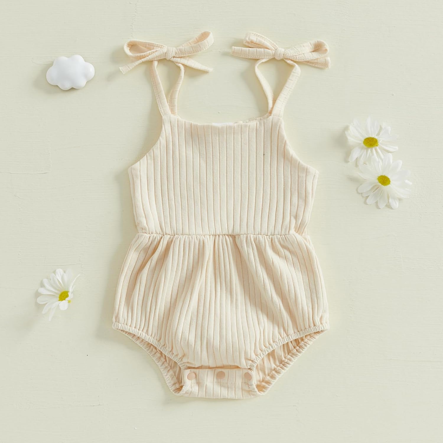 Newborn Infant Baby Girl Romper Ribbed Knit Sleeveless Spaghetti Strap One Piece Jumpsuit Bodysuit Summer Clothes
