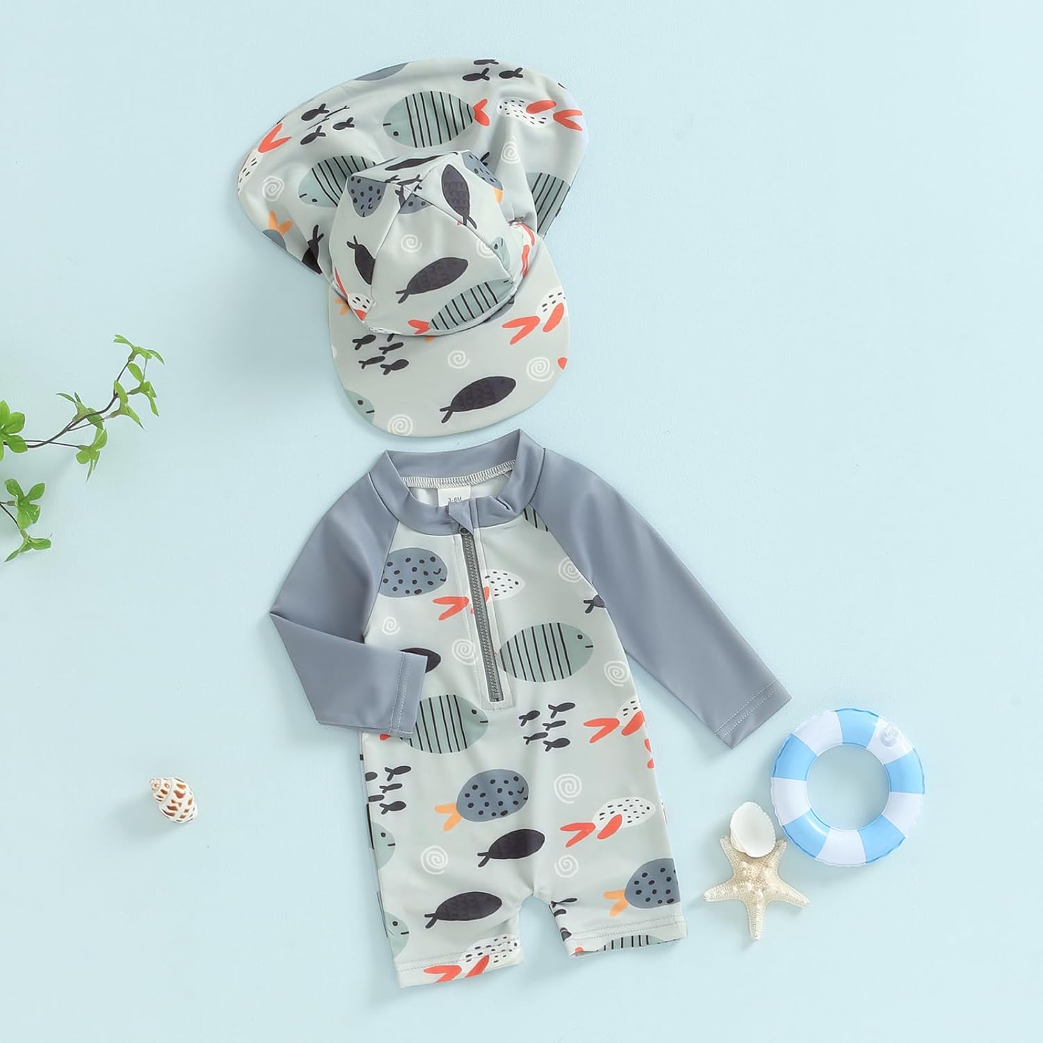 • What You Get: 1 x Baby/Toddler boy one piece swimsuit + 1 x Hat/NO. If you have any questions, you can feel free to contact us
