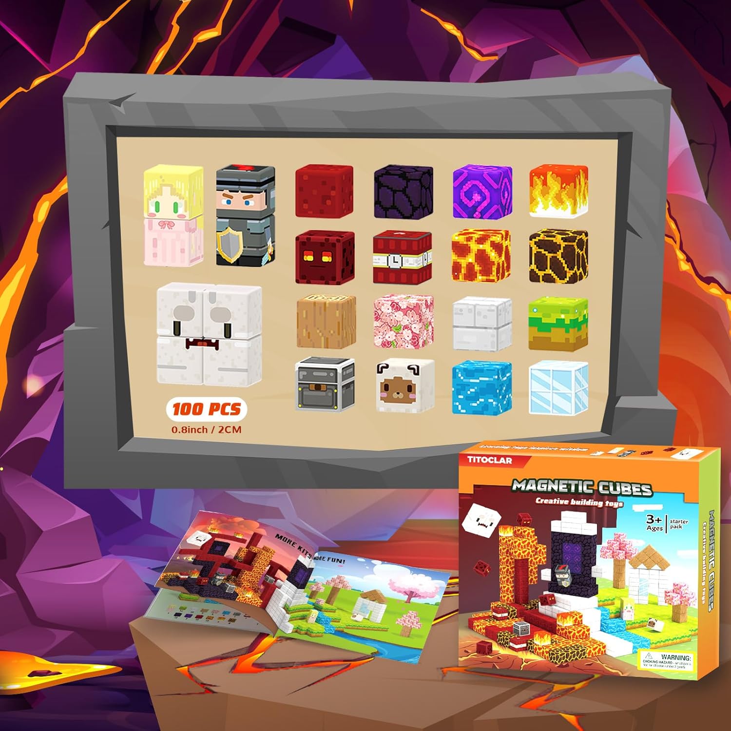 - 【Exciting Gateway Adventure】 Unleash creativity with our 100-piece 0.8inch magnetic blocks to build magical worlds! Explore two realms: a cherry blossom forest with grasslands, and a mystical cave of lava rivers and monsters. With our magnetic block, kids can construct their adventure world, From the depths of shadowy caves to enchanted forests where brave knights and elegant princesses await - Get ready for an unforgettable journey!