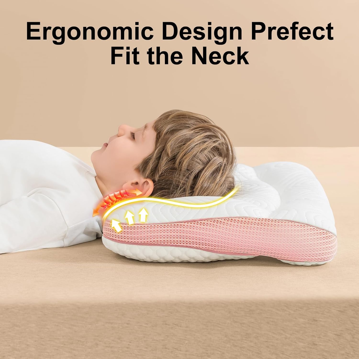 - 【Ergonomic Design】Scientific partition and contour design that fits the natural curve of toddler's neck, providing proper support for developing toddlers and promoting proper alignment of the spine. The toddler neck pillow comes in 2 lofts suitable for side, stomach and back sleepers.