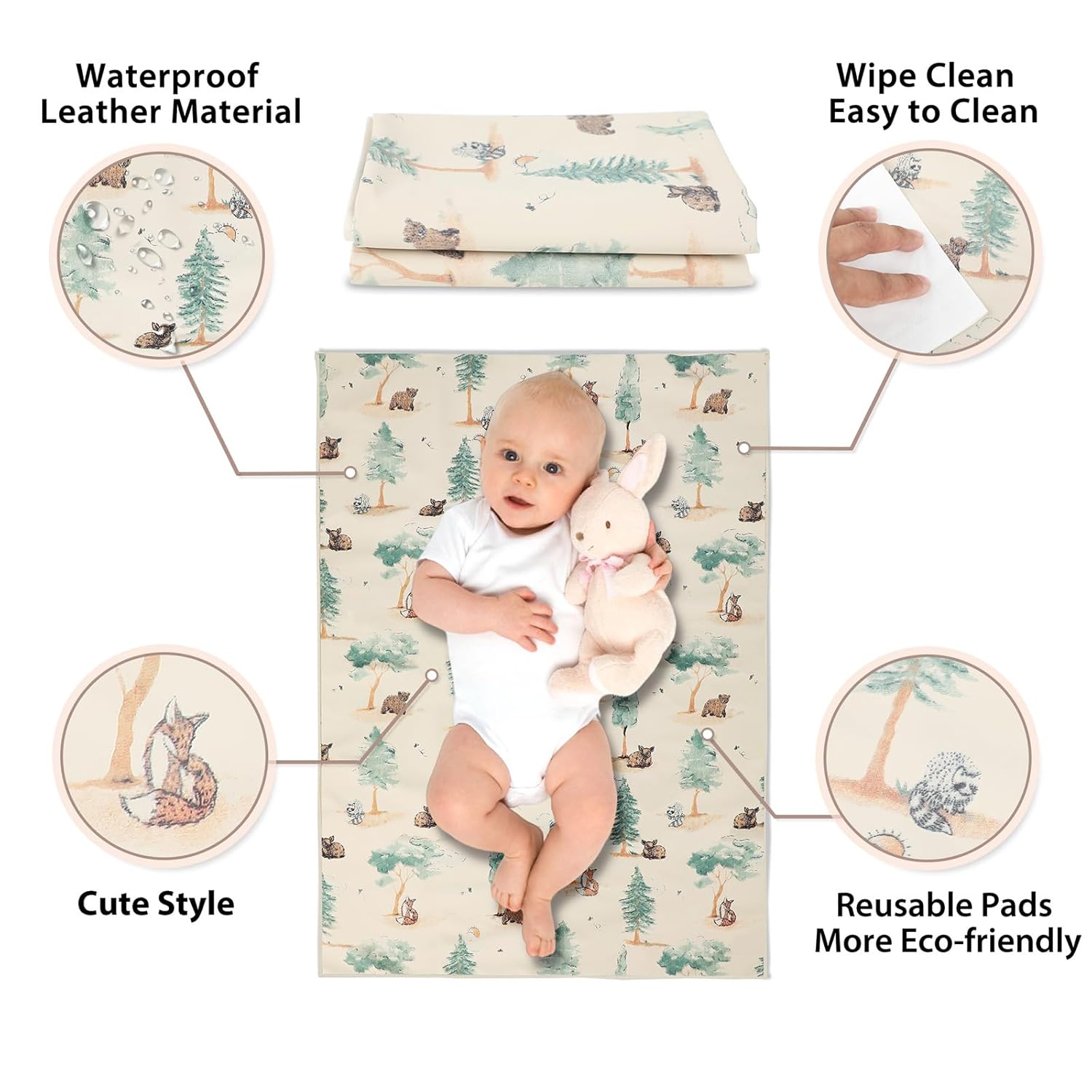 Vegan Leather Baby Changing Mat - Wipeable Portable Changing Pad, Foldable Travel Changing Mat for Baby, Newborns Toddlers Shower Gifts (Forest,20"*28")