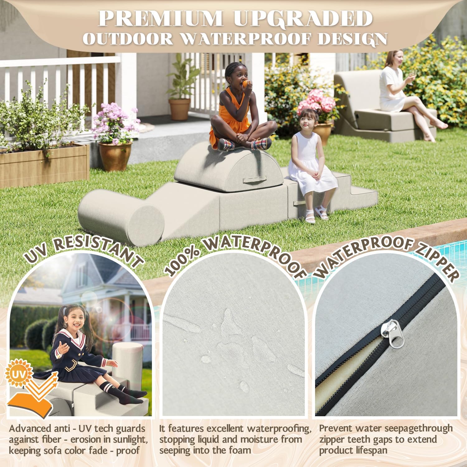 jela Foam Blocks 6Pcs Soft Play Equipment Waterproof Fabric, UV Resistant Toddler Climbing Toys Indoor& Outdoor Soft Play Climbing for Toddlers, Lightweight Climbing Blocks for Babies, Kids (Sand)