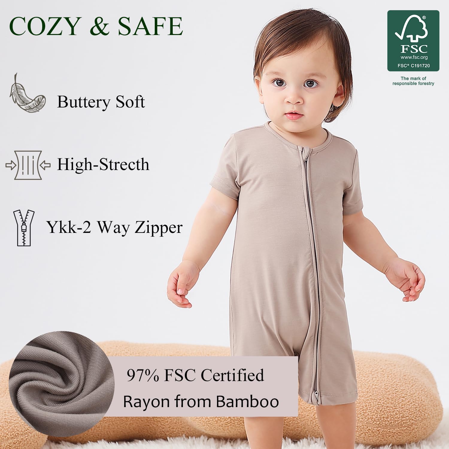 JunNeng Baby 2 Pack Rayon of Bamboo Romper Sleeper 2 Way Zipper Short Sleeve Jumpsuit Zipper Footless One-piece