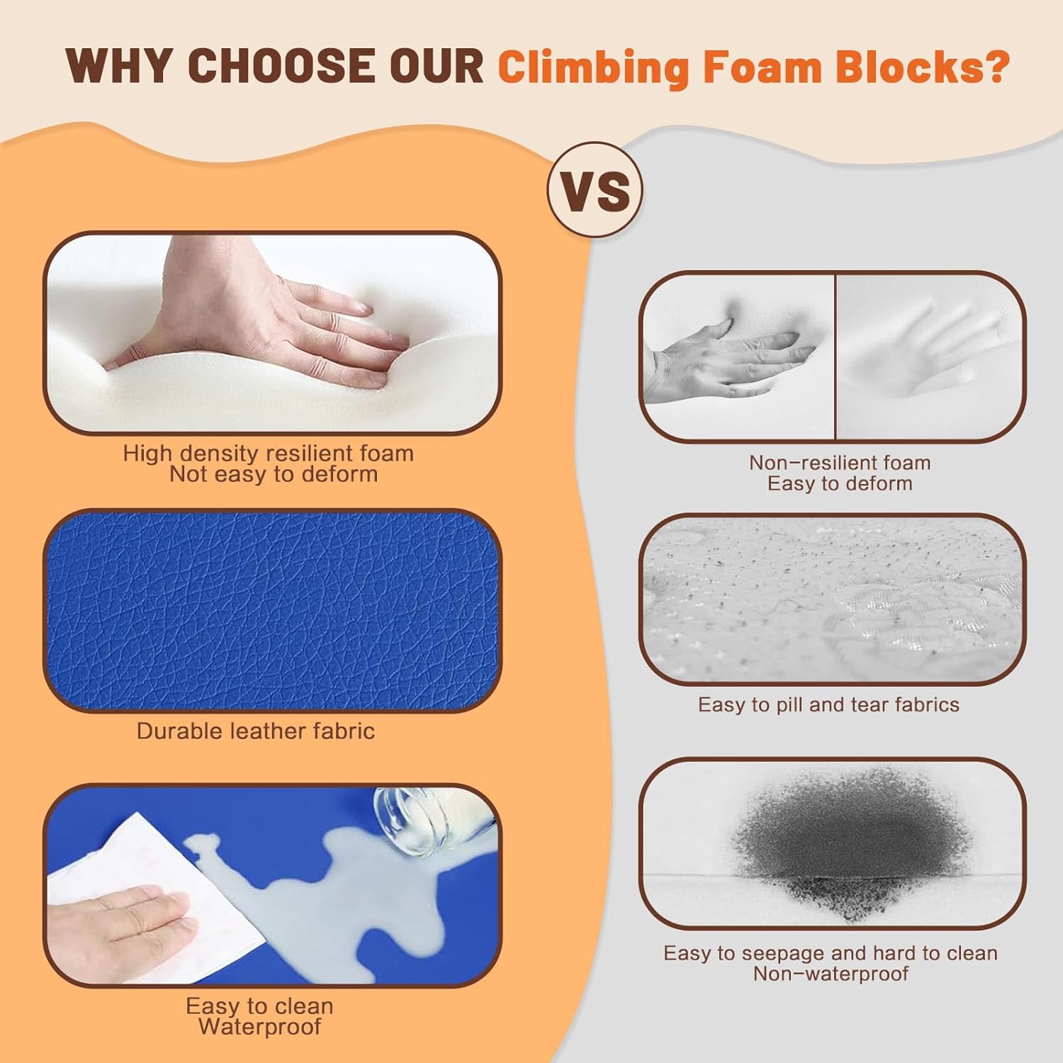 - Durable and High Quality: This foam climbing block for toddlers 3 years old is made of high quality soft foam and soft PU leather, durable and very easy to clean and maintain. Your child can safely toddle and roll on the toddler climbing toy that is both soft and supportive. This is a foam climbing blocks that parents can use for their babies with confidence