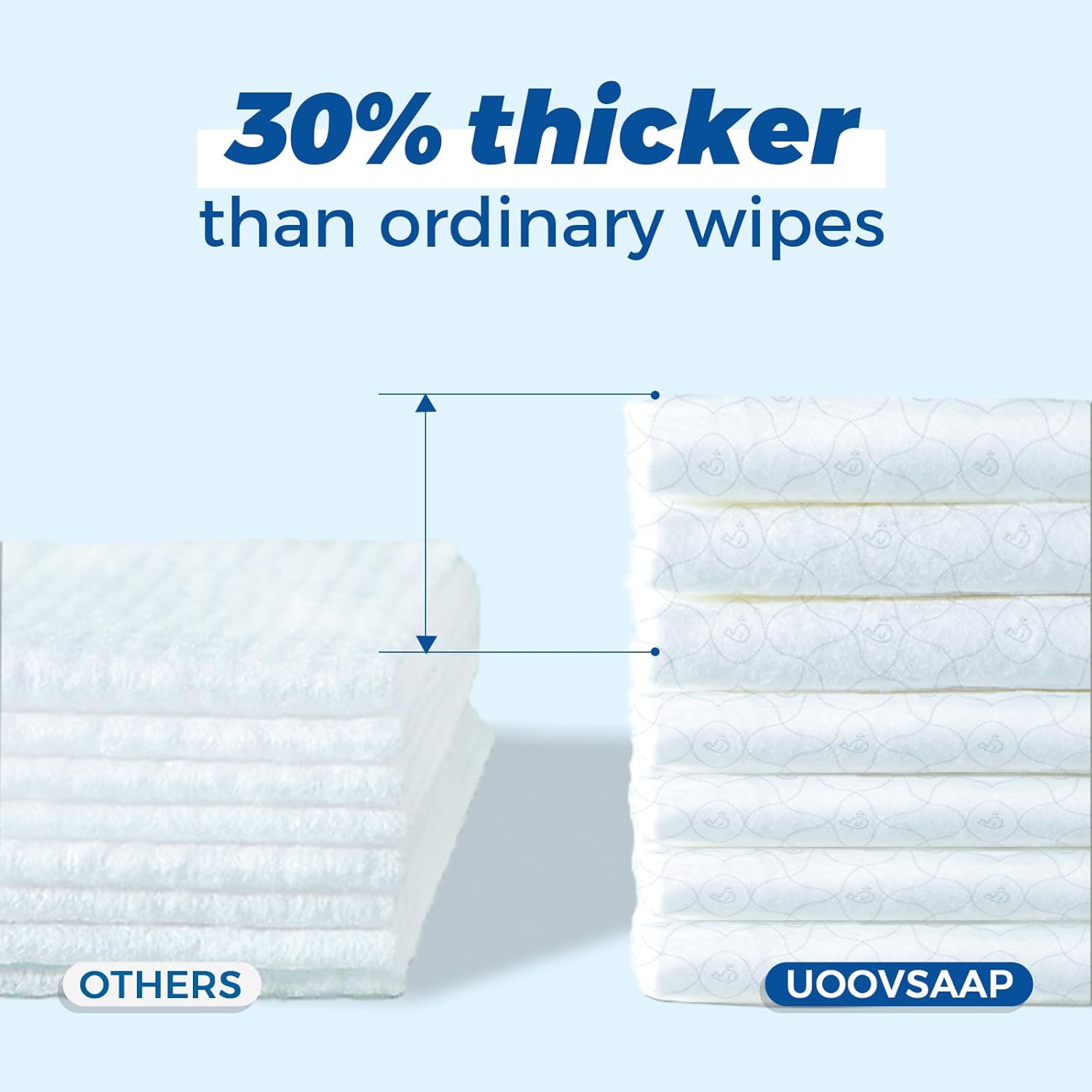 - [Extra Large & Ultra Thick - 1 Wipe Does the Job of 3] 30% Larger (8" x 6") & 50% Thicker than regular baby wipes - Our premium quilted texture provides complete coverage for messy cleanups while being gentle enough for newborn skin. No more using multiple wipes for one diaper change!