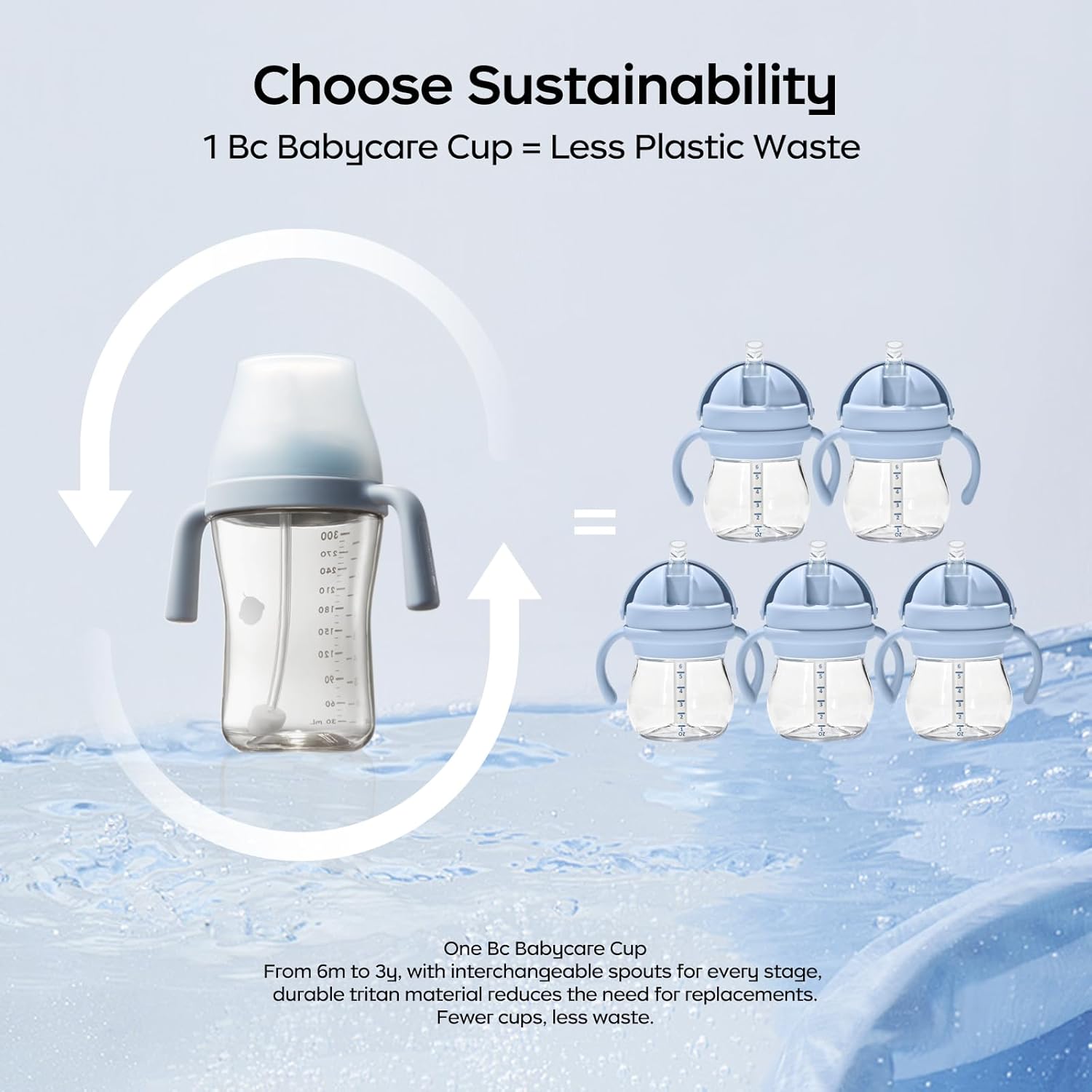 Bc babycare Sippy Cup Learner for 6+ Month Old with Nipples & Handles, Spill Proof Sippy Cup, Weighted Straw Toddler Cups, Anti-Choking Baby Cups 1 Pack,Blue