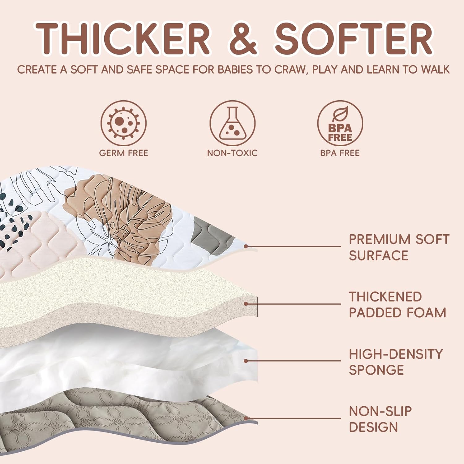 Baby Play Mat - Thicken 71x59 Inch Soft Foam Crawling Mat for Playpen & Floor, Non-Slip Waterproof Activity Playmats for Infants & Toddlers, Portable Foldable & Machine Washable, Boho Design