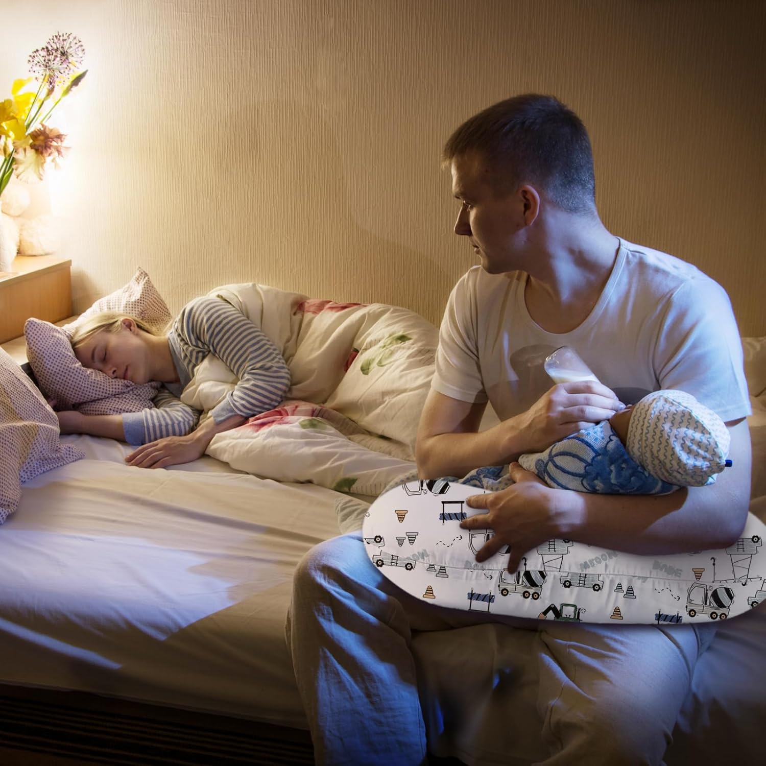 Little Grape Land Nursing Pillow for Infants, Breastfeeding Pillows, Baby Support Pillow for Nursing, Bottle Feeding, Tummy Time with Machine Washable Cover & Breathable Filling (Construction Truck)