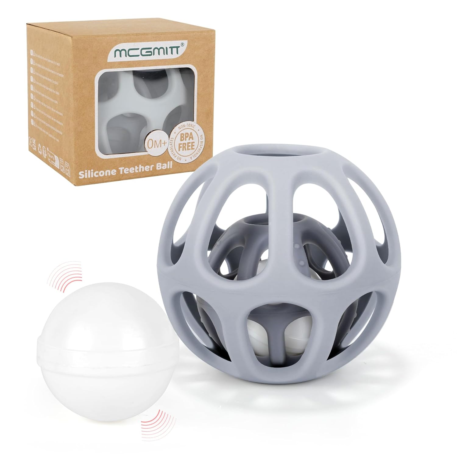 MCGMITT Baby Rattle Teething Toy, Easy Grasp Silicone Infant Ball, BPA Free Non-Toxic Soft Baby Sensory Ball Bath Toy, Motor Skills Toy, Montessori Early Educational Toy, Gift for Age Newborn and Up