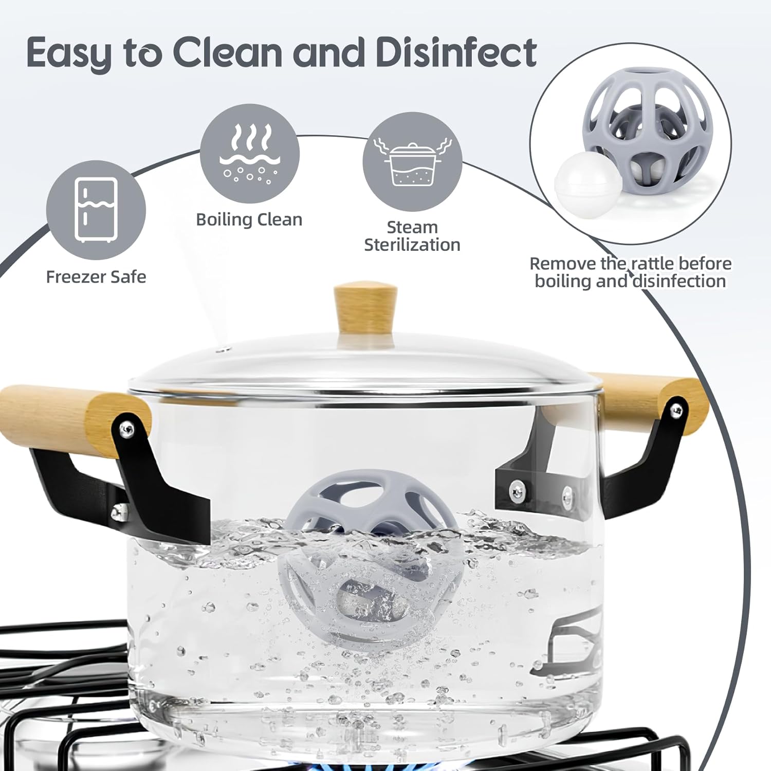 - 【Easy to Clean】We understand that parents need convenient solutions, which is why our silicone baby toys are incredibly easy to clean. Simply rinse them under warm water or toss them in the dishwasher (top rack) for a thorough sanitizing(excluding the rattle ball). They're always ready for the next playtime adventure!