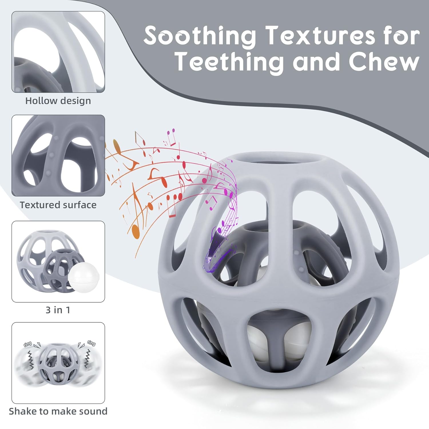 - Color : Grey Teether Ball with Rattle