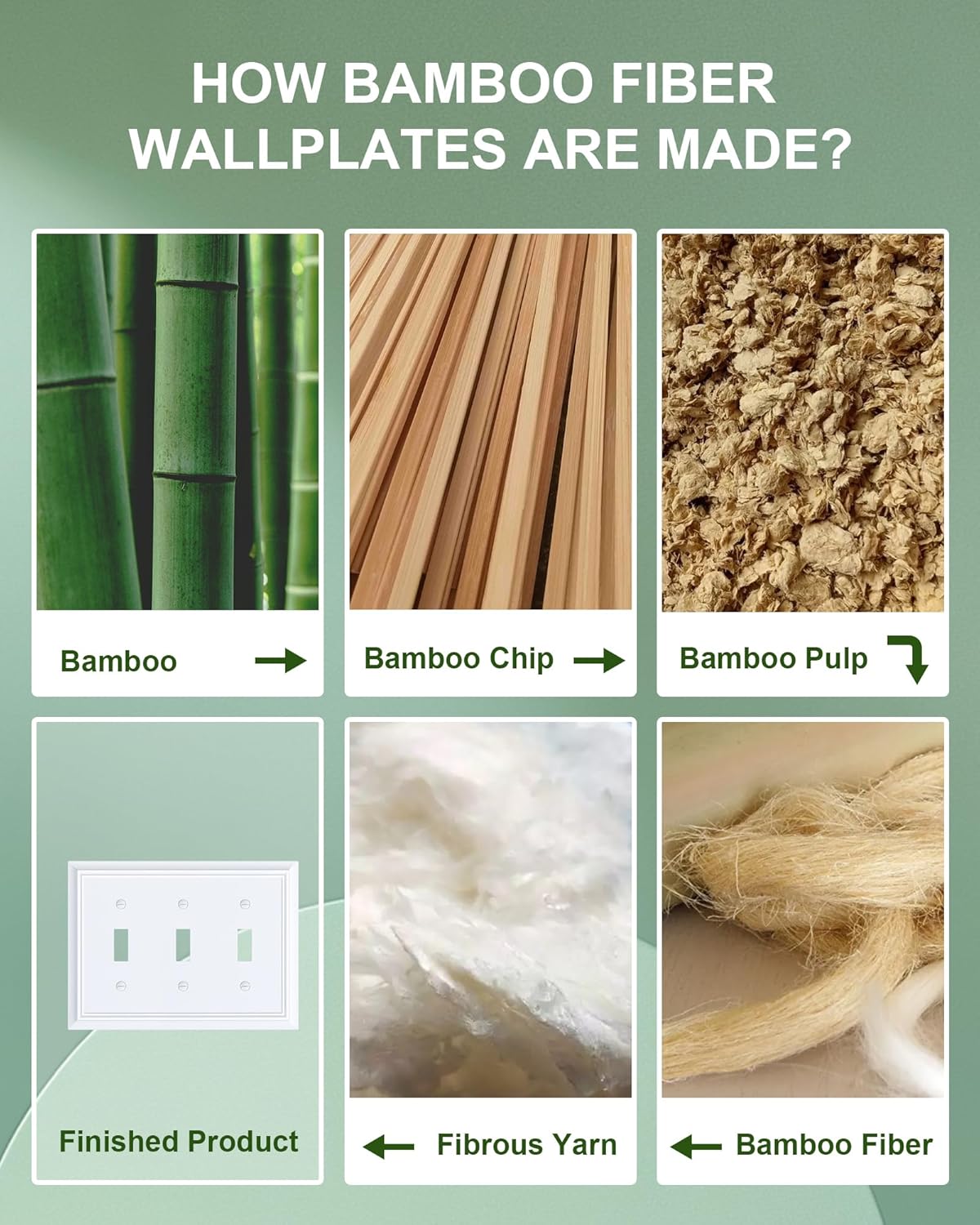 - Natural Bamboo Fiber Material - The wall plate covers are made from sustainable and environmentally friendly bamboo fiber, much thicker and more robust than plastic covers, easier to clean. Resistant to heat, moisture, and corrosion, ensuring it remain a stunning addition to your home for years to come.