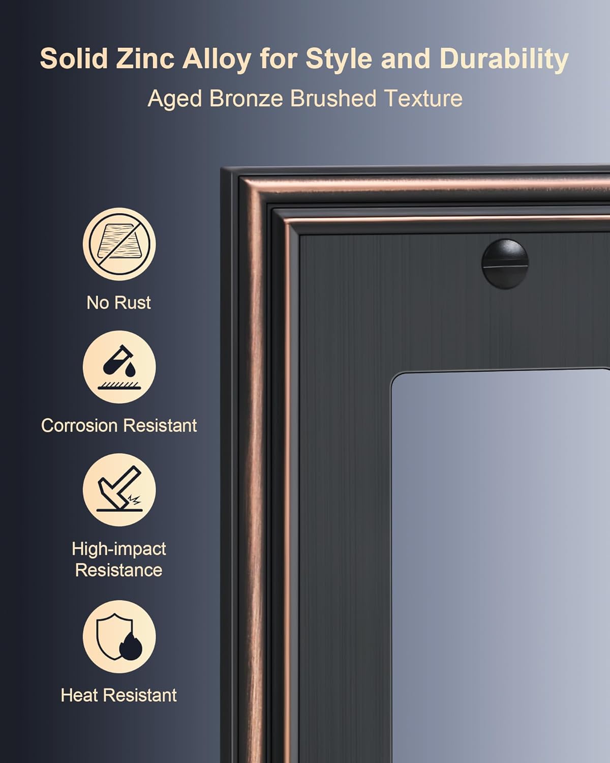 - Durable Solid Zinc Alloy - Constructed from thick and sturdy zinc alloy, the wall plate cover offers exceptional durability and sturdiness, easier to clean and maintain. It is resistant to high impact, tarnishing, and corrosion, unbreakable. Ensuring it remains a stunning addition to your home for years to come.