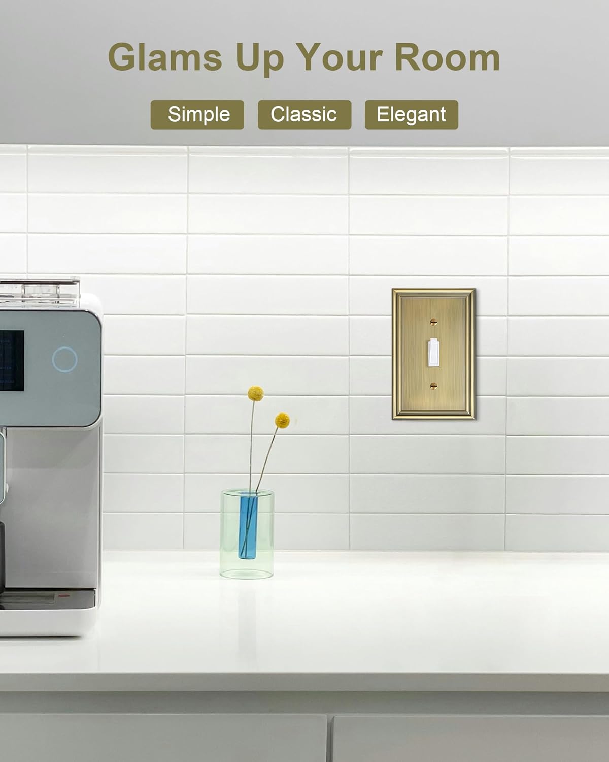 - Wide Application - Versatile and easy to match, These brass switch plate covers are compatible with Toggle Light Switch, Rotary Dimmer Switch. Complements any interior style, whether your decor is modern, traditional, or contemporary, this plate seamlessly blends in and glams up your wall.