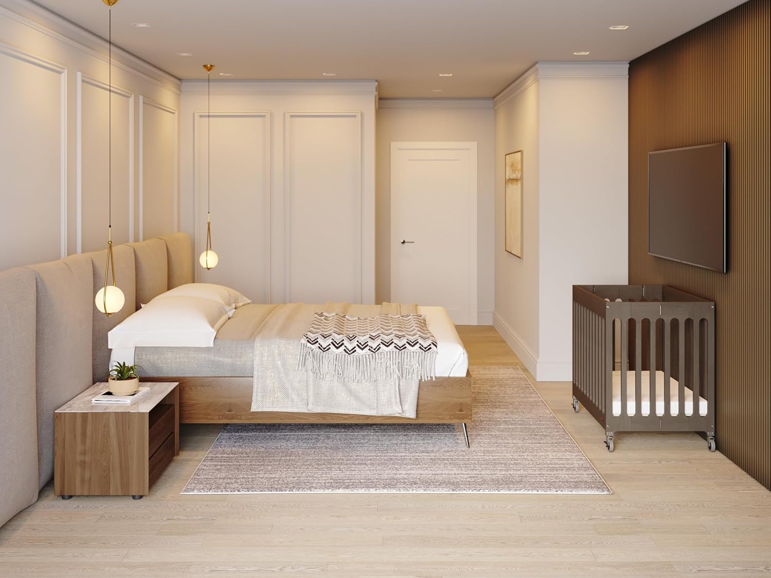 - Style and Convenience - This modern mini crib is a great addition to any hotel room, vacation rental, or nursery. The compact design & wheels make it easy to move around. A space-saving crib for infants and toddlers that is convenient for rooms and hotels with limited space, offering a durable solution while maintaing an upscale design.