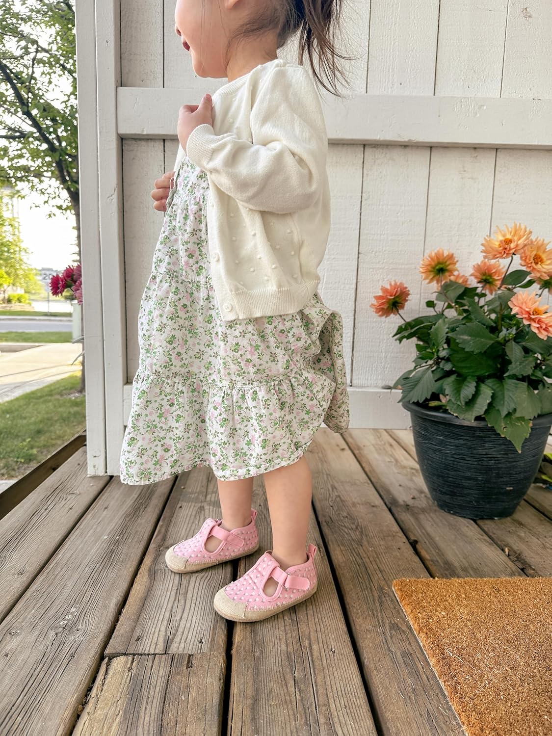 - Easy On-Off and Comfort: Designed to be easy to put on, while also staying put. Padded insole provides protection and plenty of cushioning. Non-slip suede sole helps protect your child from slipping. Naturally breathable lining helps feet stay dry and cool. Easy-to-clean Spot clean with a mild detergent and damp cloth.